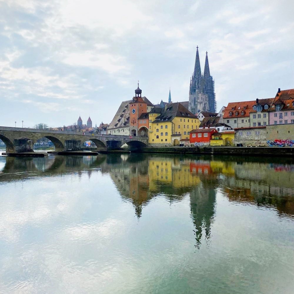 Über die Flussinsel Oberer Wöhrd führte mich meine Route anschließend zurück in die Regensburger Altstadt. Dabei wandelte ich nun auf der Steinernen Brücke, die bald ihren 900.Geburtstag feiern darf und somit eine der ältesten Brücken Deutschlands ist. Mit ihrer Länge von über 300 Metern gilt die zwischen 1135 und 1146 errichtete Steinerne Brücke als ein Meisterwerk mittelalterlicher Baukunst und ist neben dem Regensburger Dom das wohl bedeutendste Bauwerk der Stadt.