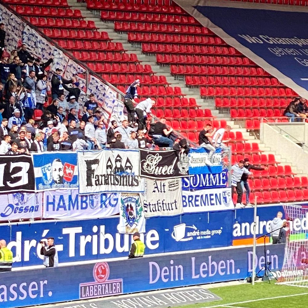 Die 2.Halbzeit läuteten die mitgereisten Maggis optisch mit einer kleinen Gedächtnisaktion für den 2015 dramatisch und bis heute unter nebulösen Umständen tödlich verunglückten FCM-Fan Hannes ein, während die Ultras Regensburg mit Spruchbänder gegen die aktuellen Investorenpläne der DFL wetterten. Außerdem durften die Oberpfälzer bald nach Wiederanpfiff jubeln. Denn der SSV Jahn konnte in der 52.Minute dank eines Eigentores von Gnaka überraschend ausgleichen. Fortan wurden die Regensburger etwas forscher, aber Torchancen blieben weiter Mangelware. Als die Partie langsam langweilig wurde, musste es abermals ein Freistoß für die Magdeburger richten. Atik brachte den Ball scharf in den Strafraum und nachdem Jahn-Schlussmann Urbig zunächst einen Kopfball von Brünker parieren konnte, überwand Elfadli den Keeper im Nachschuss (81.).
