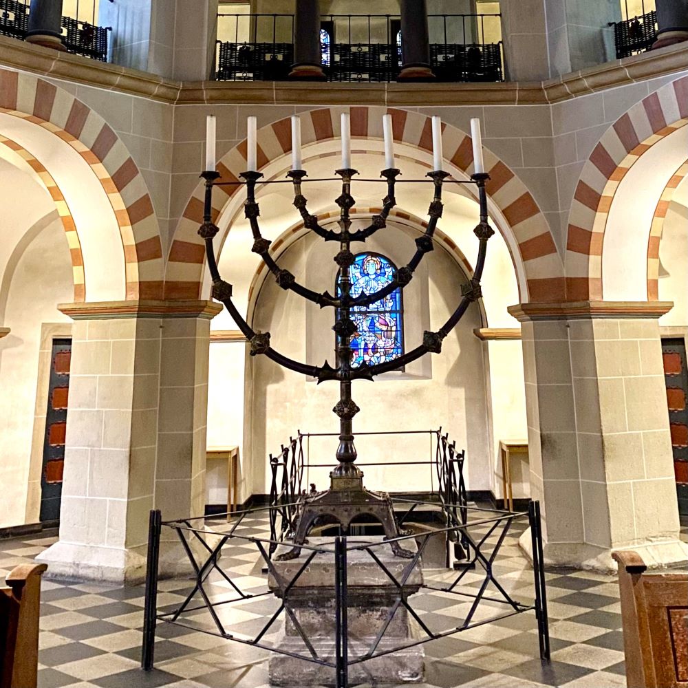 Der Essener Domschatz wäre nun noch eine Visite wert gewesen, aber dessen Museum schloss bereits um 17 Uhr die Pforten. Nichtsdestotrotz schaute ich nochmal ins benachbarte Essener Münster hinein, wo mit dem um das Jahr 1000 aus Bronze gegossenen Siebenarmigen Leuchter eines bedeutendsten Kunstwerke des Frühmittelalters auf deutschem Boden ausgestellt ist. Zur Essener Stadt- und Kulturgeschichte will ich jetzt allerdings nicht ausholen, denn das habe ich bereits letzten Sommer getan. Wer mehr zur Stadtgeschichte und auch der Historie von Rot-Weiss Essen aus meiner Feder lesen will, führt sich einfach mal den Bericht Essen 07/2022 zu Gemüte.