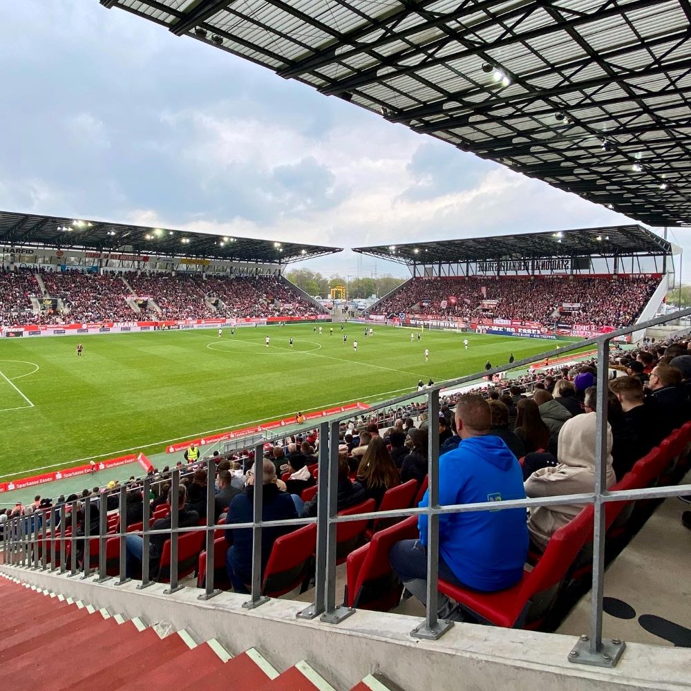 Während die Fans von der Stadionregie mit den Klassikern Steigerlied, Opa Luscheskowski und Oh RWE weiter in Stimmung gebracht wurden und auch erstmals das Gebimmel von Glockenhorst zu vernehmen war, studierte ich die Vorberichte. Bei RWE war ein wenig Unruhe unter der Woche, da man sich etwas überraschend vom bisherigen Sportdirektor Jörn Nowak getrennt hatte. Die Auftritte der Mannschaft waren in den letzten Wochen außerdem so mäßig (nur drei Siege in den letzten 17 Ligaspielen), dass eine gewisse Unzufriedenheit mit dem kickenden Personal und dem Cheftrainer in der Fanszene gärte. Zwar steht man gegenwärtig fünf Punkte über’m Strich, aber nach 14 Jahren in der Viert- und Fünftklassigkeit, will man natürlich auf keinen Fall wieder aus der 3.Liga absteigen und möglichst schnell die nötigen Punkte für den Klassenerhalt beisammen haben.