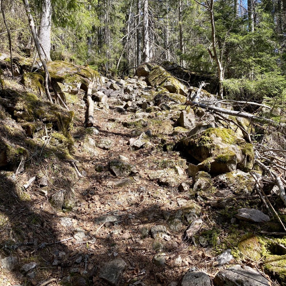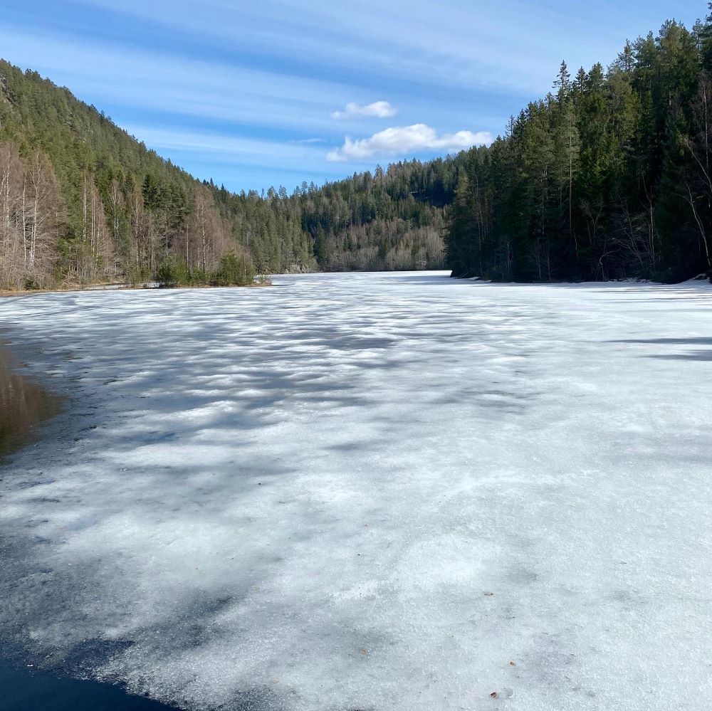 Nächste Highlights beim Aufstieg waren die Stauseen Borgetjern und Svarttjern. Beide noch teils von einer Eisschicht bedeckt. Ab so 250 m ü. NN war es hier am letzten Tag des Aprils doch noch etwas winterlich. Das spürte ich erst recht nachdem ich den schönen Trail am Nordufer des Svarttjern gemeistert hatte. Denn beim weiteren Anstieg zum Knabben fungierte der Trail dank der Schneeschmelze als temporärer Gebirgsbach. Zwar nervig, aber mit wasserfestem Schuhwerk zum Glück kein Grund umzukehren.