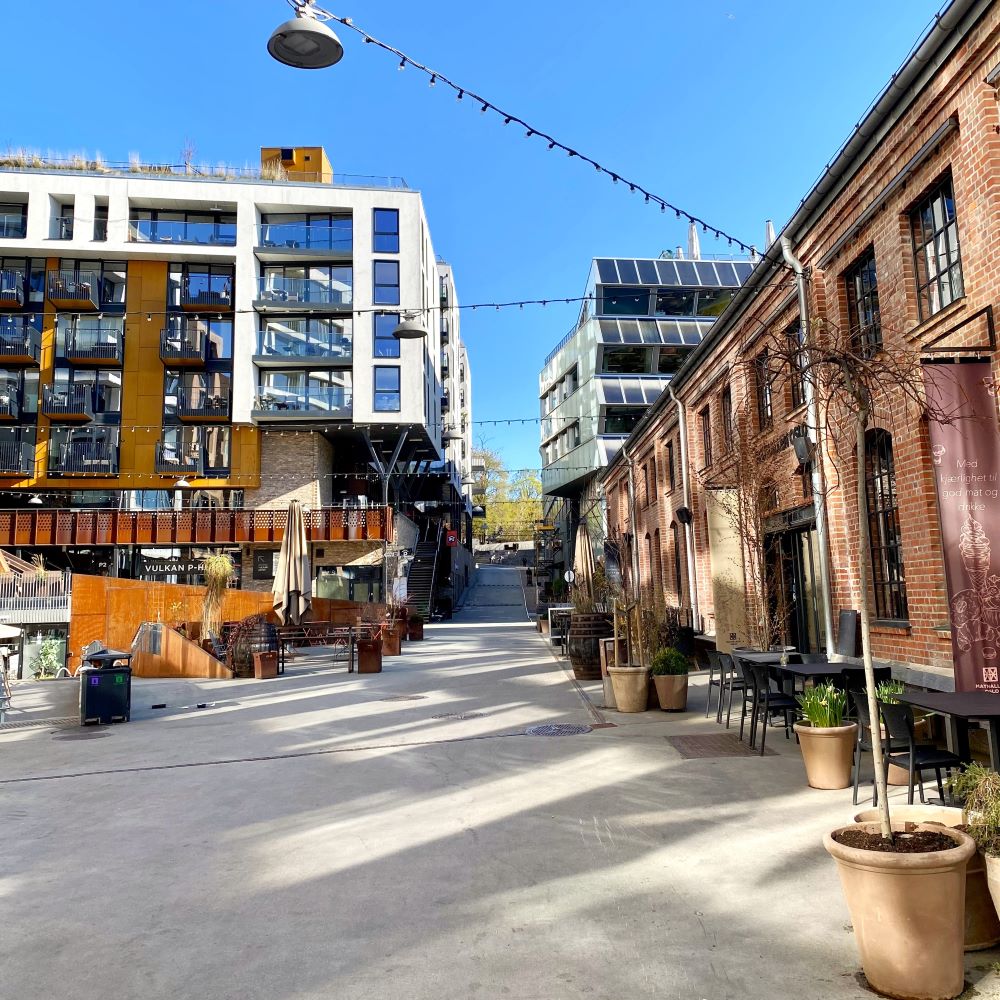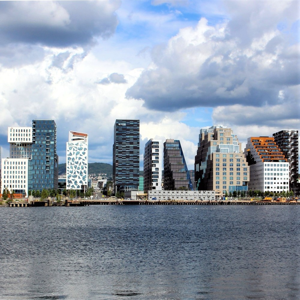 Nach gut drei Stunden im Museum ging es wieder an die frische Luft und der Regen hatte erfreulicherweise aufgehört. Nun wollte ich mir noch ein wenig die zeitgenössische Architektur Oslos anschauen. Am Vortag war ich bereits sehr begeistert, wie schön ein altes Industriequartier am Fluss Akerselva revitalisiert wurde. Dort fungiert eine alte Eisengießerei mittlerweile als Markthalle und drumherum ist ein topmodernes Wohnquartier mit etlichen Restaurants und Bars entstanden. Heute schaute ich mich wiederum nahe des Hauptbahnhofs um. Dort findet man u. a. das zwischen 2004 und 2008 nach Plänen des norwegischen Architekturbüros Snøhetta errichtete Operahuset (Opernhaus). Obendrein entstanden in der Nachbarschaft etliche moderne Hochhäuser, deren Ensemble den Beinamen Barcode bekommen hat.