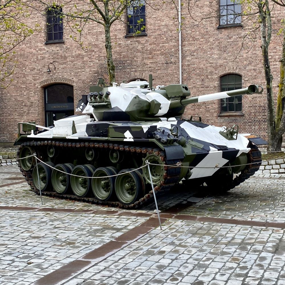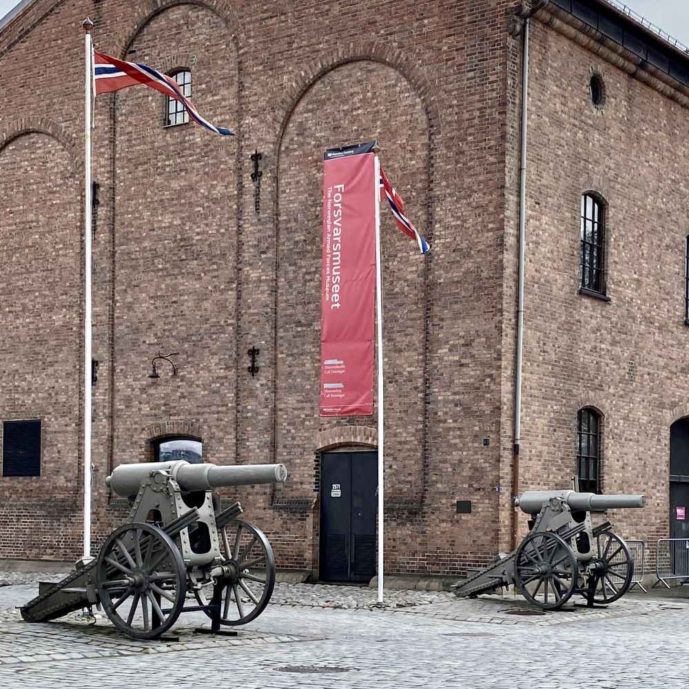 Nachdem der Snack im Hotel verputzt war, sollte es natürlich wieder touristisch werden. Wetterbedingt verwarf ich einen weiteren Stadtspaziergang oder Naturausflug und setzte mich mit der üppigen Osloer Museumslandschaft auseinander. Zwar hatten einige am 1.Mai geschlossen, aber das Forsvarsmuseet (Verteidigungsmuseum), welches in den alten Arsenalen der Akershus festning (Festung Akershus) durch rund 1.000 Jahre norwegische Militärgeschichte führt, hatte geöffnet. Da ich mir am Vortag die Osloer und teils auch die gesamtnorwegische Geschichte vom 11. bis ins frühe 20.Jahrhundert erschlossen hatte (Vgl. Oslo 04/2023), konnte ich dort sehr gut das 20.Jahrhundert vertiefen. Denn einen Großteil der Ausstellungsfläche im Forsvarsmuseet beschäftigt sich mit den beiden Weltkriegen, dem Kalten Krieg und den norwegischen Beiträgen bei UN- und NATO-Operationen in den letzten 75 Jahren.