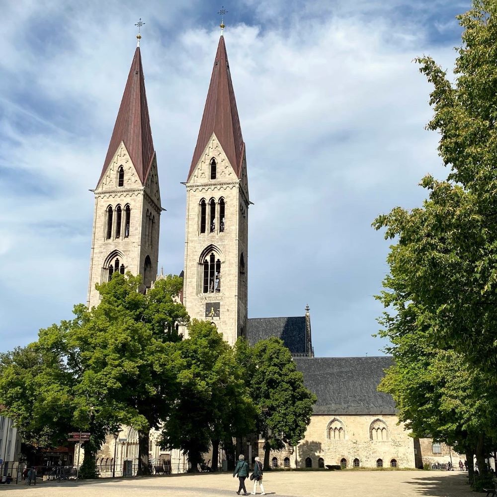 Dazu hat die Altstadt zahlreiche im wahrsten Sinne des Wortes herausragende mittelalterliche Kirchen zu bieten. Allen voran natürlich der Halberstädter Dom St. Stephanus und St. Sixtus, dessen Ursprung auch zum Beginn der aufgezeichneten Stadtgeschichte führt. Wie in den nahen Großstädten Halle (Vgl. Halle 05/2023) und Magdeburg (Vgl. Magdeburg 02/2020) geht die Stadtgründung auf die fränkische Ost-Expansion im späten 8.Jahrhundert zurück. Um das Jahr 800 wurde hier ein fränkischer Missionsstützpunkt zur Christianisierung der unterworfenen sächsischen Stämme im Harzgau errichtet.