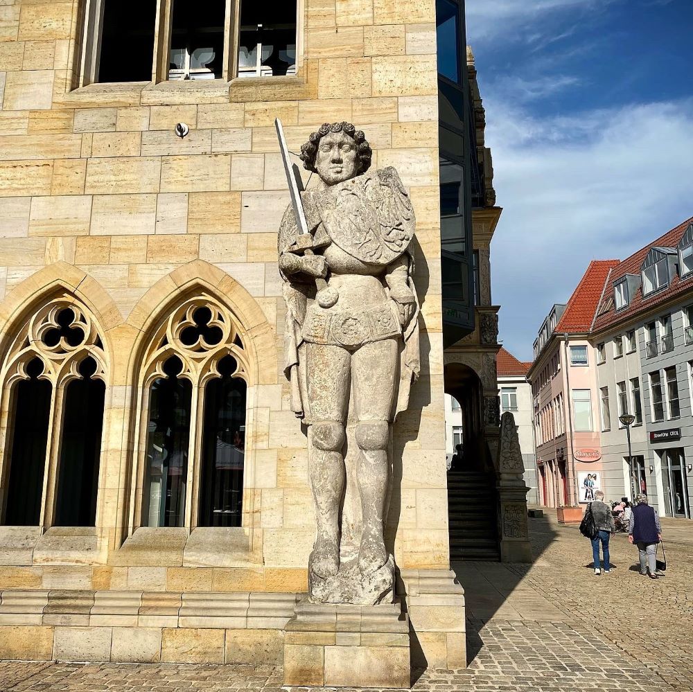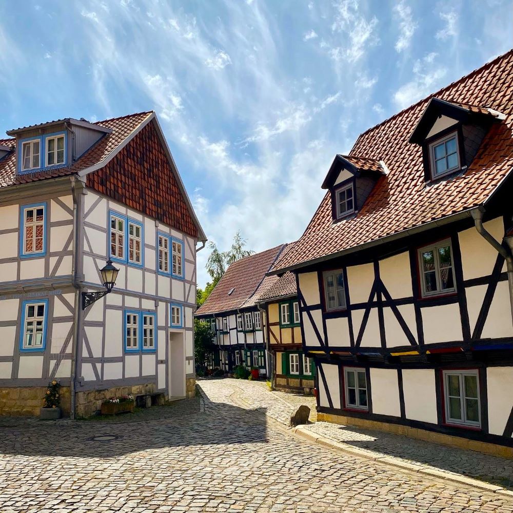 Nachdem sich die Tumulte gelegt hatten und das Gros der Hallenser so langsam die Heimreise antrat, spazierte ich gemütlich in die Halberstädter Altstadt. Die soll sich 1990 baulich in einem fürchterlichen Zustand befunden haben, aber über 30 Jahre nach der Wende kann man wieder durch wunderschöne Straßenzüge mit sanierter Fachwerkbebauung schlendern. Rosenwinkel (siehe Titelbild), Westenhof, Steinhof, Grauer Hof, Grudenberg oder Bakenstraße seien da mal exemplarisch genannt.