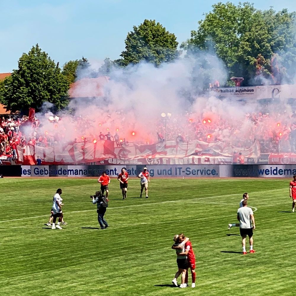 Entscheidend war am Ende wohl, dass zumindest in der Defensive die höherklassige Qualität beim Halleschen FC sichtbar war und auch die mit frischen Kräften gestartete Schlussoffensive des Underdogs relativ souverän vom eigenen Tor ferngehalten wurde. Lediglich ein-, zweimal segelte der Ball in den letzten Minuten nochmal halbwegs gefährlich durch den HFC-Strafraum, ehe der für den Favoriten erlösende Schlusspfiff ertönte. Kurz nach dem Klassenerhalt in der 3.Liga wurde mit dem Pokalsieg (und der damit verbundenen Teilnahme am DFB-Pokal) also auch das zweite Saisonziel erreicht.