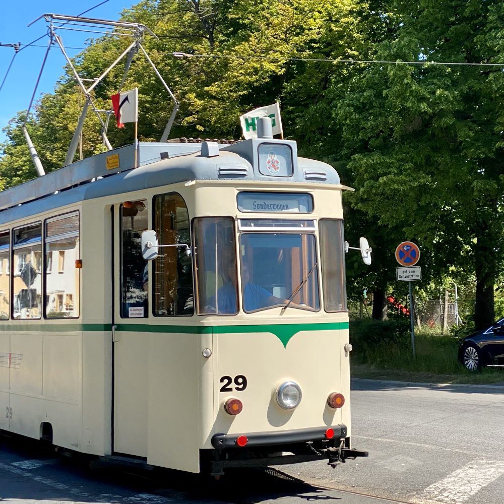 Nachdem die schönsten Straßenzüge der Altstadt und die wichtigsten Kirchen bereits vor meiner Gastropause abgearbeitet waren, widmete ich mich vor der abendlichen Abreise noch dem Kloster St. Burchardi (11.Jahrhundert) und dem teilrekonstruierten historischen Rathaus mit dem bereits erwähnten Roland. Von dort ging es dann um 17:37 Uhr per Tram – die übrigens dieses Wochenende ihren 120.Geburtstag feierte und mit historischen Sonderwagen die Nerds aus der Spotterszene angelockt hatte – zurück zum Hauptbahnhof. Es blieb noch Zeit die aktuelle Erlebnis Fussball und ein mitteldeutsches Erfrischungsgetränk in der Bahnhofsbuchhandlung zu erstehen, ehe 18:04 Uhr via Goslar die Heimreise nach Hildesheim angetreten wurde.