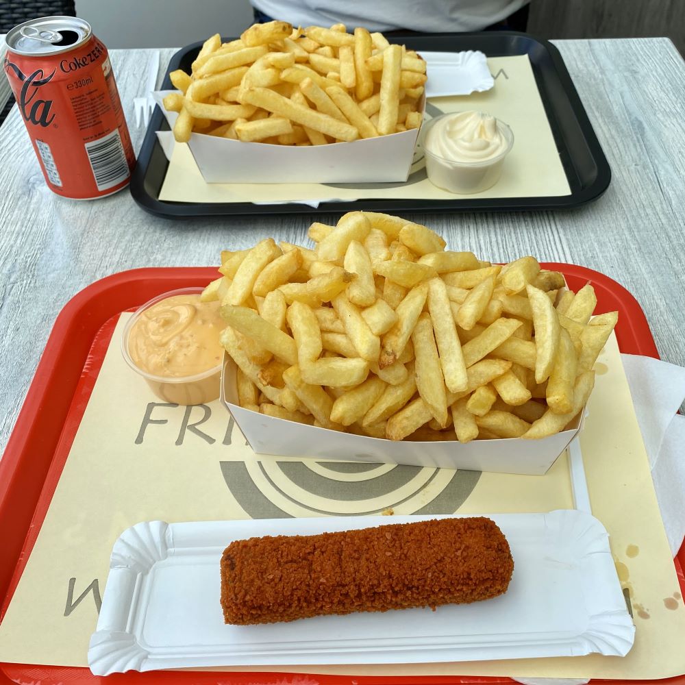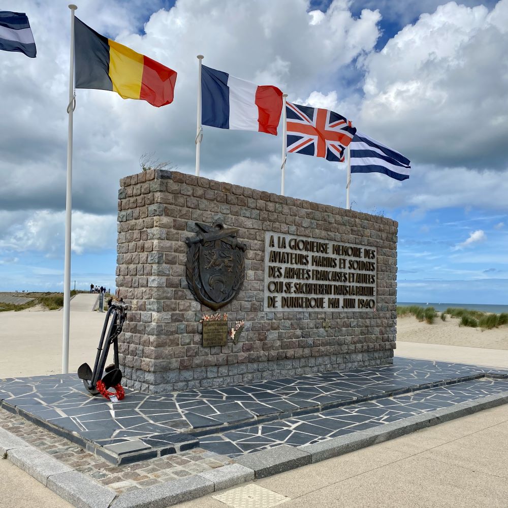 Am Morgen des 13. Augusts war es schließlich soweit. Alles war bestmöglich vorbereitet und wir fuhren um 6 Uhr in Hildesheim los. Weil das Verkehrsaufkommen an einem Sonntagmorgen erwartungsgemäß moderat ausfiel, kamen wir gut durch. So blieb nach einem Tankstopp nahe Brugge (Brügge) noch genug Zeit eine Frituur namens Frietpunt für ein hochgradig ungesundes belgisches Mittagessen aufzusuchen. Wenig später war ebenso eine erste Brise Meerluft am Strand von Dunkerque (Dünkirchen) drin. Wir tranken Kaffee an der Promenade und informierten uns obendrein per Schautafeln über die Operation Dynamo im Frühjahr 1940. Damals hatte die Wehrmacht das Gros der British Expeditionary Force (BEF) und Teile der französischen Armee in Dunkerque eingeschlossen. Doch auf dem Seeweg konnten zwischen dem 26. Mai und dem 4. Juni 198.229 britische und 139.997 französische Soldaten nach England evakuiert werden.