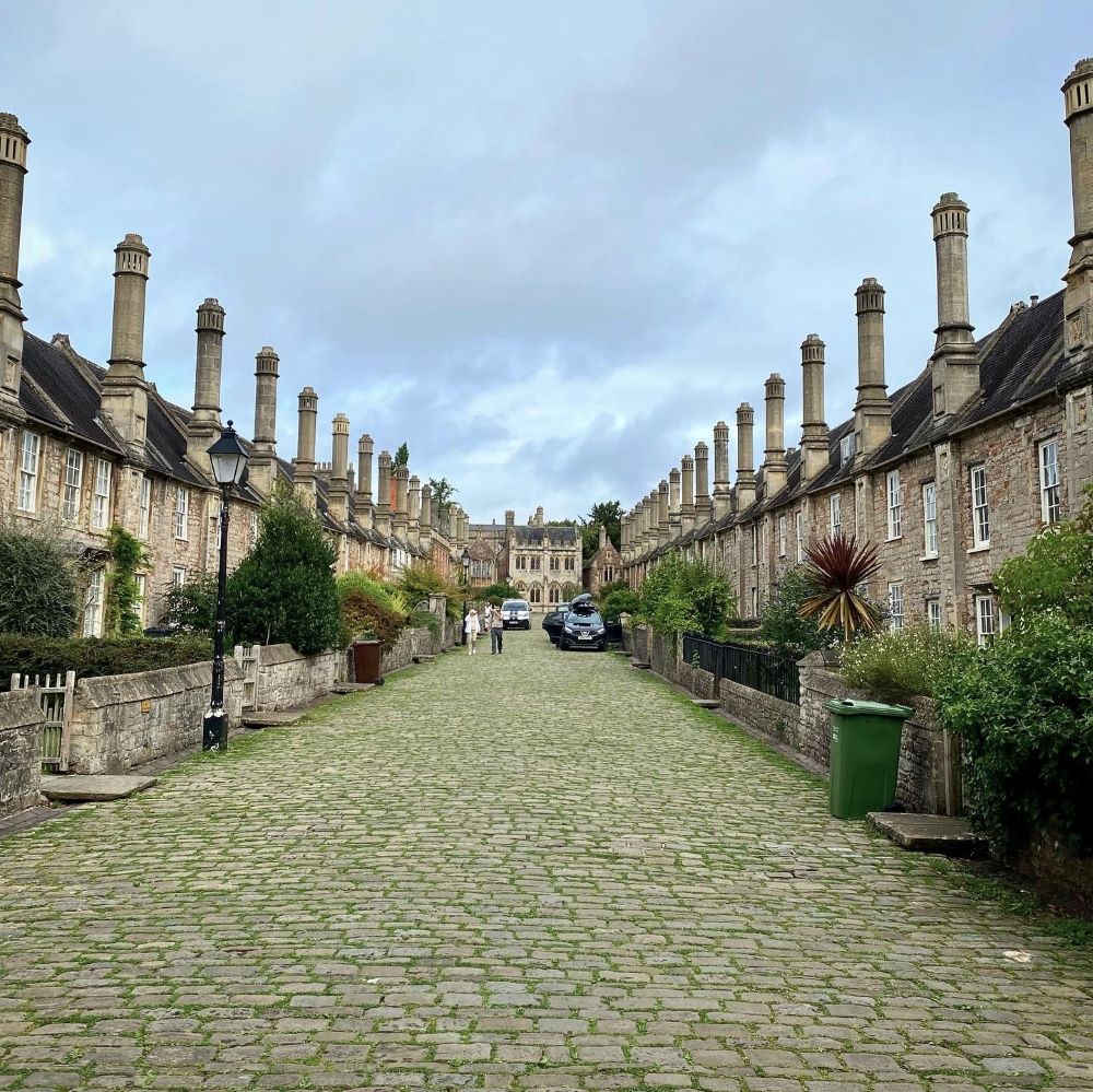 Ein weiteres Kleinod von Wells fanden wir nördlich an die Kathedrale angrenzend. Zwischen 1348 und 1363 wurde dort mit dem Vicar’s Close die erste und bekanntermaßen bei weitem nicht letzte Reihenhaussiedlung auf den Britischen Inseln errichtet. Die 42 Wohnhäuser dienten den Mitgliedern des Kirchenchores in den folgenden Jahrhunderten als Unterkunft. Teilweise leben noch heute Angestellte des Bistums in den schnuckligen Häusern.