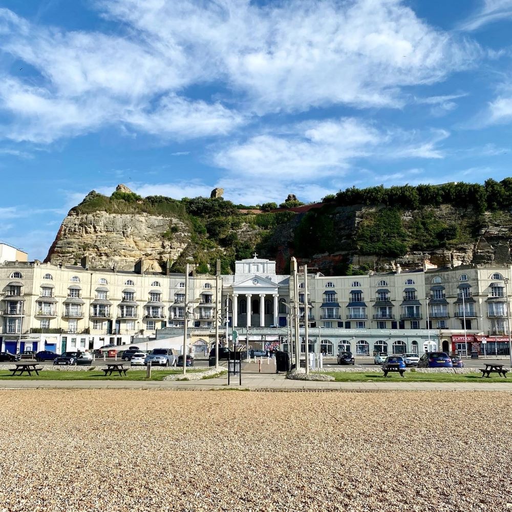 Sichtlich erholt wurde sich am ersten richtigen Urlaubstag ab 7 Uhr der Wanst vollgeschlagen und gut gestärkt drehten wir danach mit dem Caddy eine Runde durch Hastings (ca. 90.000 Einwohner). Ganz netter Badeort an der englischen Südküste, der Touristen u. a. mit seinen Klippen, einer Burgruine, einem historischen Stadtkern, einer Strandpromenade und einer Seebrücke gewisse Urlaubsfreuden bereiten dürfte.