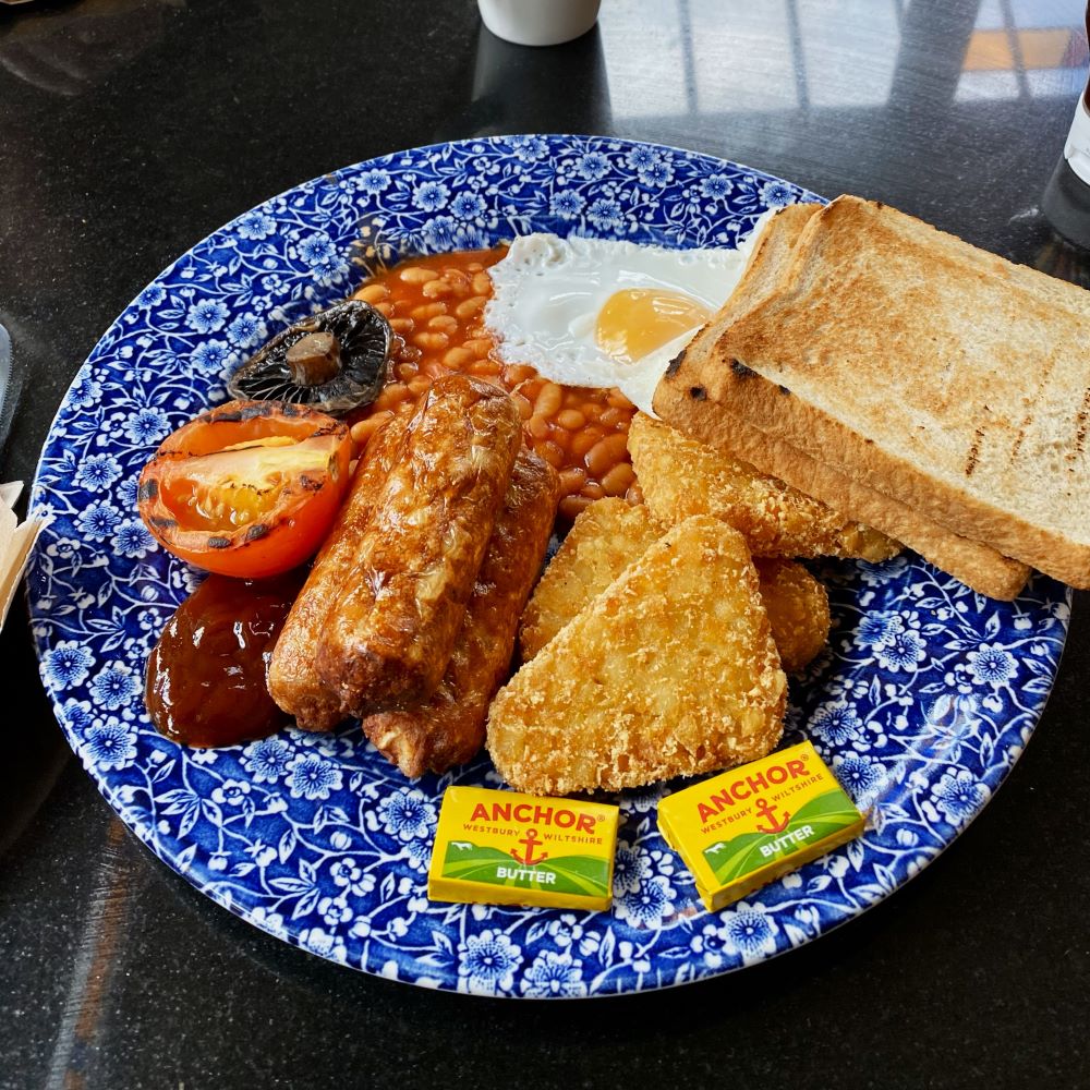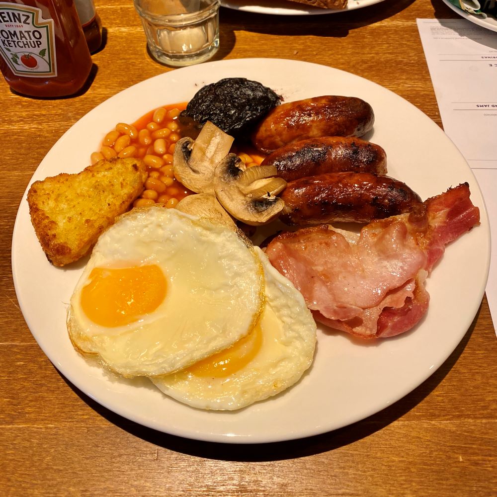Am nächsten Morgen herrschte natürlich schnell Aufbruchstimmung. Da in der Unterkunft wohl höchstens Frühschoppen, aber kein Frühstücken möglich war, wurde der Wetherspoon’s des Ortes fix lokalisiert. Ich bin zwar eigentlich gar nicht (mehr) so der Fan dieser Kette, aber man weiß, dass man da auch am Sonntag um 8 Uhr ein preiswertes und qualitativ akzeptables Frühstück bekommt. Dazu war auf diesem Trip absurderweise wieder mein Sammelfieber geweckt worden. Wir hatten auf dieser Reise viel zu wenig Fußballstadien besucht, da wollte ich wenigstens meine Statistik bei Wetherspoon’s in die Höhe schrauben.