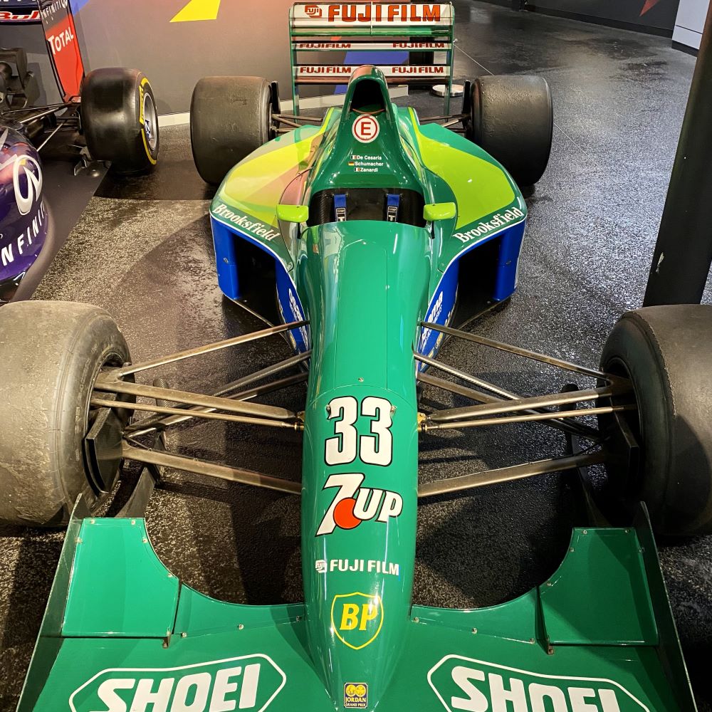 Das Museum ist sehr modern und interaktiv gestaltet. Nach einem rasanten Einführungsfilm widmet man sich der Geschichte des Areals, auf welchem im Mittelalter eine Abtei zu finden war und die Royal Air Force später einen Flugplatz betrieb. Herzstück des Museums sind aber natürlich die ausgestellten Motorräder und Rennwagen, insbesondere die ikonischen F1-Boliden der vergangenen Jahrzehnte. Ich bin zwar nicht so ein großer Motorsportfan wie mein Vater, aber ich habe es glaube ich bereits im Bericht aus Modena geschrieben; Formel 1 gucken war in den 1990er Jahren oft ein kleines sonntägliches Familienvergnügen. Entsprechend ist es eine nette Kindheitserinnerung und ich empfinde gewisse Nostalgie, wenn ich vor den einstigen F1-Boliden von Nigel Mansell, Damon Hill, Michael Schumacher oder David Coulthard stehen kann.