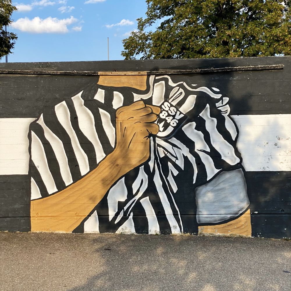 Mit dieser Führung im Rücken, kam der SSV nun selbstbewusst wie Albrecht Berblinger aus der Kabine, sollte am Ende aber mitnichten wie jener Ulmer Schneider baden gehen müssen. Kurz nach Wiederanpfiff gaben dem Aufsteiger mehrere gute Chancen sogar noch weiter Auftrieb. Das war so mitreißend, dass mitunter der Support nicht mehr nur allein auf den Schultern von Broken Society Ultras & Co im etatmäßigen Fanblock lastete. Auch anderswo folgte auf Szenenapplaus mal ein Anfeuerungsruf. Man merkte zwar, dass ein Großteil der Stadionbesucher sich erst wieder seit dem Frühjahr für das fußballerische Aushängeschild der Stadt interessiert. Aber das ist aber natürlich nichts Spezifisches für Ulm und daher völlig wertfrei von mir protokolliert.