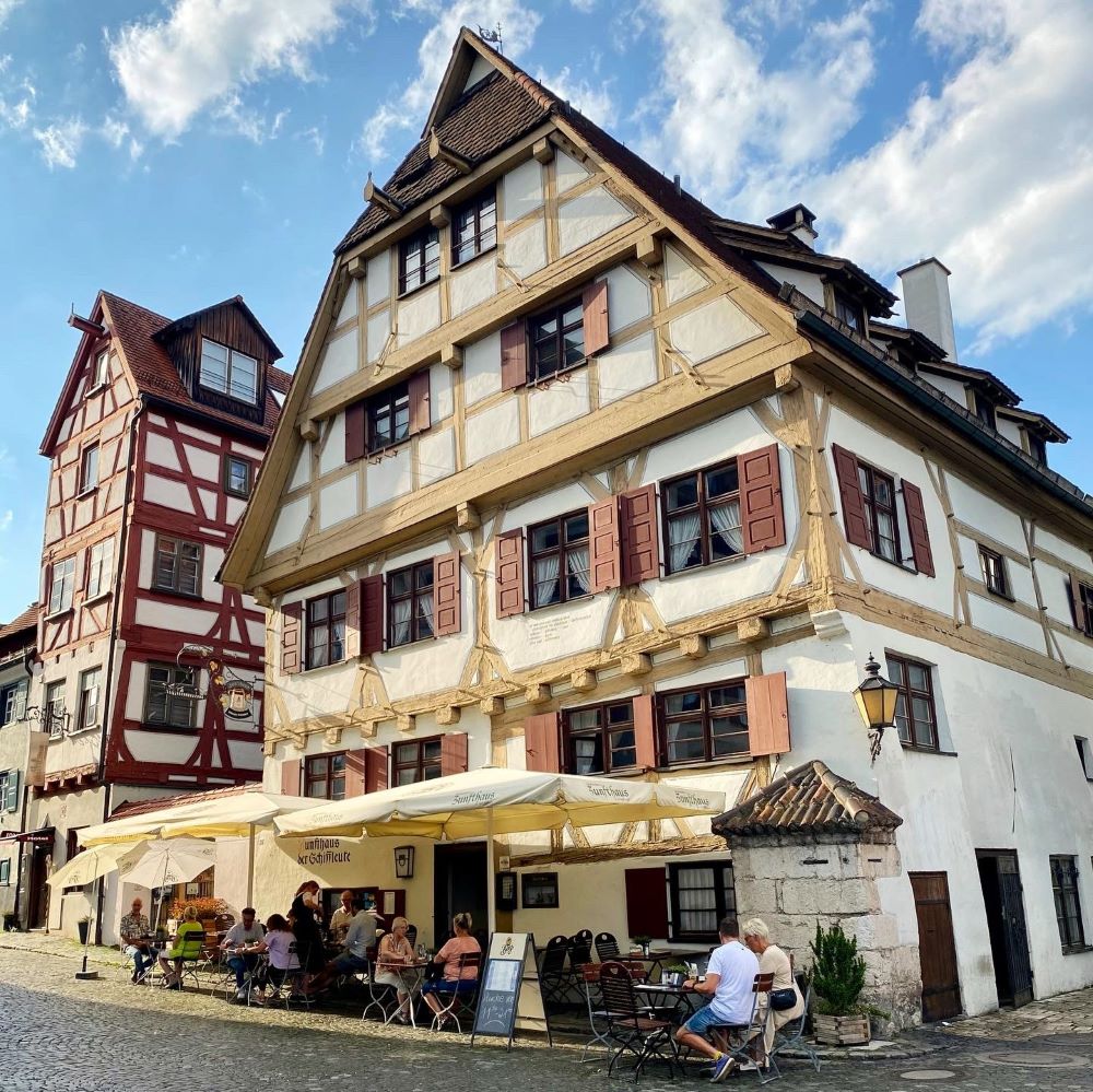 Eine authentische mittelalterliche Altstadtstruktur konnte ich dagegen im Fischer-und Gerberviertel erleben. Es grenzt an die Donau und wird vom Flüsschen Blau durchflossen. Ergo war es im Mittelalter als Quartier für Fischer, Schiffer und Gerber prädestiniert. Ebenso wurden einige Wassermühlen in diesem Viertel errichtet. Als diese Gewerke dort noch wirklich angesiedelt waren, dürfte es sicher alles andere als eine privilegierte Wohngegend gewesen sein. Doch als man die im Zweiten Weltkrieg verschont gebliebenen, aber dennoch über die Jahrhunderte ruinös gewordenen Fachwerkhäuser in den 1970er Jahren sanierte, kam es zum Aufschwung. Gastwirte und Kunsthandwerker hauchten dem Quartier neues Leben ein und anschließend entwickelte sich das Viertel schnell zu einem Touristenmagneten, der auch mich magisch anzog.