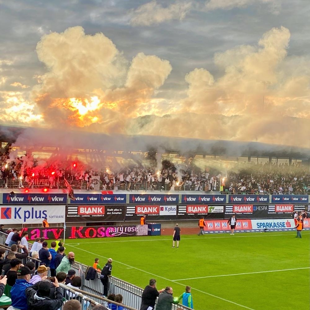 Die seit fast 10 Jahren im Derby sieglosen Altacher hatten die Partie von fortan gut unter Kontrolle und Chancen auf ein drittes Tor gab es bereits vor dem Seitenwechsel. Es dauerte allerdings noch bis zur 56.Minute, ehe Paul Koller im Strafraum der Lustenauer frei zum Abschluss kam und auf 0:3 erhöhte. Ja, natürlich folgte wieder Pyrotechnik im Gästeblock. Aber vor allem machte sich bei den im Ländle-Derby so leidgeprüften Altachern endgültig Siegeseuphorie breit. Hier konnte und sollte nichts mehr anbrennen. Jedenfalls im übertragenen Sinne…