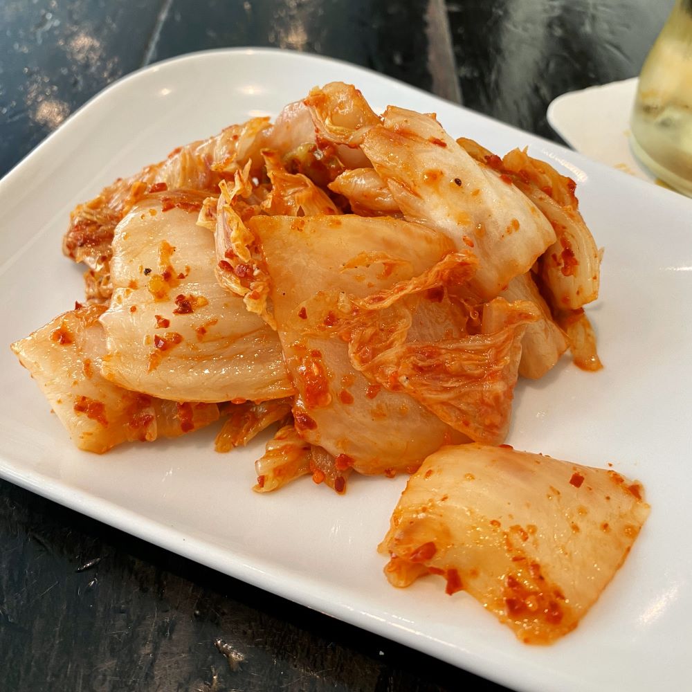 Beim weiteren Streifzug durch das inoffizielle Little Tokyo rund um die Immermannstraße entdeckte ich schließlich das bereits geöffnete Nudellokal Naniwa. Allerdings waren gegenwärtig alle Tische belegt und ich musste noch einen Moment vor der Tür warten. Ich bekam dabei schon mal eine Speisekarte in die Hand gedrückt und beim Eintritt ins Naniwa konnte ich sogleich meine Order platzieren. Danach wurde ich zum frei gewordenen Tisch geleitet und kurz darauf standen meine Vorspeise Kimchi (4,70 €) und ein Ginger Ale (2,50 €) vor mir. Der fermentierte Kohl mit pikanter Chilinote ist zwar eigentlich das Nationalgericht der Koreaner, aber die Japaner lieben Kimchi ebenso.