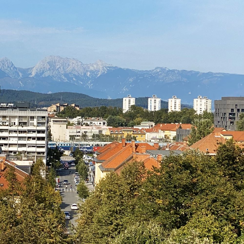 Nachdem 80 € für eine Übernachtung ohne Frühstück entrichtet waren, genoss ich aus meinem Zimmer im 9.Stock gern ein wenig den Ausblick auf die Berge der Kamniške Alpe (Kamniker Alpen). Dann machte ich mich gegen 16:00 Uhr auf in die nahe Altstadt. Schnell zog mich der Lärm eines vielleicht gerade einmal 1,896 km vom Hotel entfernten Fußballmobs an. Doch ich kam zu spät. Die Schlachtrufe und das Zischen und Krachen von Pyrotechnik entfernten sich akustisch. Als ich ca. 16:30 Uhr die Hauptverkehrsachse Slovenska cesta (Slowenische Straße) im Stadtzentrum erreichte, staute sich auf Höhe des Hochhauses Nebotičnik der Busverkehr in Richtung Norden und überall lagen ausgebrannte Fackeln auf dem Asphalt.