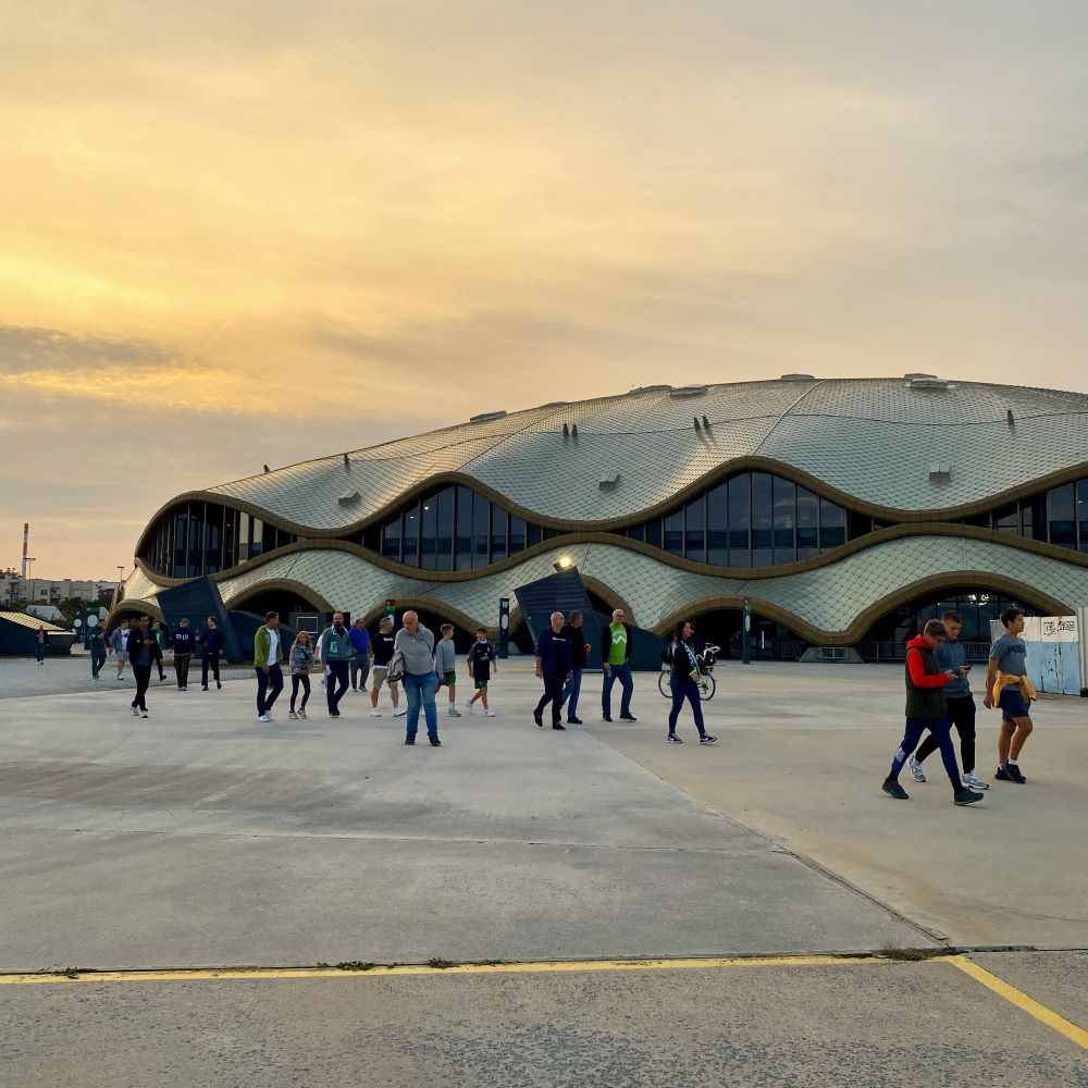 In dieser bis zu 20 Stockwerke hohen Betonnachbarschaft wurde 2009/10 das Projekt Športni park Stožice umgesetzt. Ljubljana gönnte sich eine neue Mehrzwecksporthalle mit 12.480 Zuschauerplätzen und ein neues Stadion mit 16.038 Zuschauerplätzen. Es handelt sich dabei um die größten und modernsten Sportstätten Sloweniens. Neben den Nationalmannschaften der populärsten Ballsportarten, sind in der Arena bzw. im Stadion Stožice auch die Topvereinsmannschaften der Hauptstadt zuhause. In Sachen Fußball und somit Stadion ist das der amtierende slowenische Meister NK Olimpija Ljubljana, der heute sein erstes Heimspiel der Gruppenphase der UEFA Europa Conference League austragen sollte. Der Gegner ŠK Slovan Bratislava ist ebenfalls amtierender Landesmeister, hat aber diesen Sommer genau wie Olimpija die Qualifikation für die UEFA Champions League und die UEFA Europa League verfehlt.