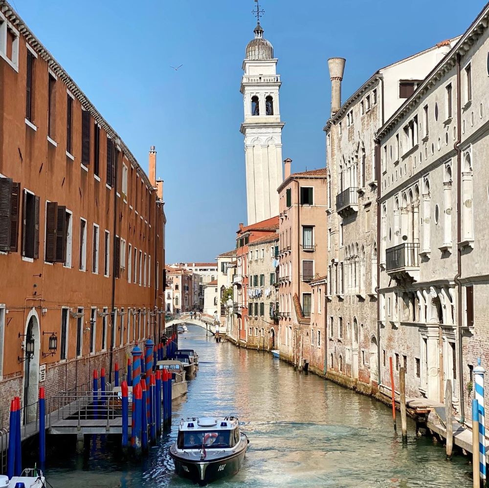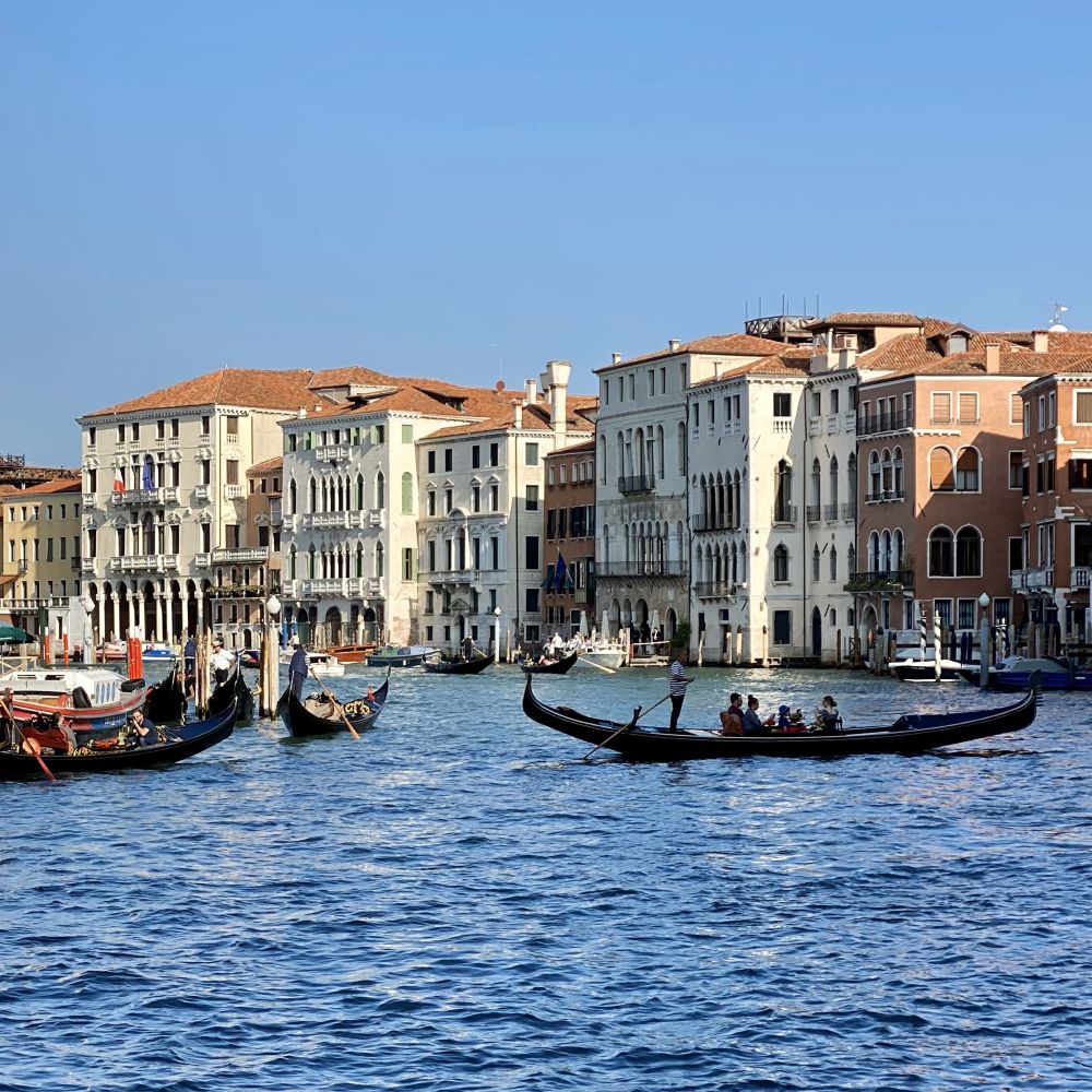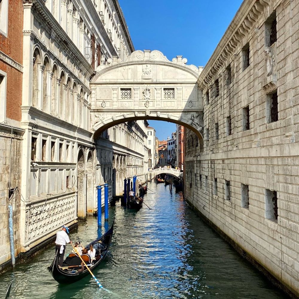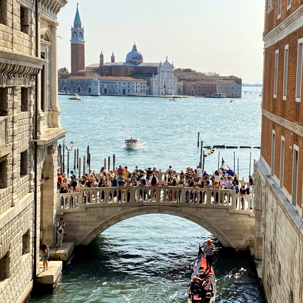 Ich überlegte nach Spielschluss, ob ich wie viele Fans per Vaporetto (Wasserbus) zur Stazione di Venezia Santa Lucia fahre oder während Sonnenuntergang und Blauer Stunde einen weiteren Spaziergang durch die Lagunenstadt mache. Weil ich insgeheim hoffte, dass die Touris größtenteils aus der Stadt oder wenigstens vom Straßenpflaster hinunter sind, entschied ich mich für den Fußmarsch. Aber weniger als am Nachmittag war leider nicht los. Kaum kam der Palazzo Ducale wieder in Sicht, wurde es erneut crowdy. Oft ging es nur im Gänsemarsch durch die Gassen, so dass ich 96 Minuten für die rund fünf Kilometer benötigte. Klar, kurze Stopps für Fotos, sowie einen knapp zehnminütigen Abstecher in einen Minimarkt zwecks Erfrischungsgetränken, müssen wir abziehen. Aber dennoch benötigte ich locker 20 Minuten mehr für die Distanz, als unter normalen Umständen.