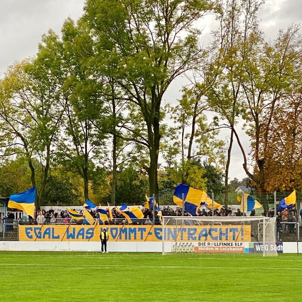 Ebenfalls nicht wortkarg sollten sich die Fanlager in den kommenden 90 Minuten zeigen. Nordhausen und Sondershausen trennen nur 18,96 km und seit Jahrzehnten pflegt man die regionale Rivalität auch auf dem Rasen. Bereits zu DDR-Zeiten gab es denkwürdige Derbys, als sich die Vorgängervereine BSG Motor Nordhausen und BSG Glückauf Sondershausen in der zweithöchsten Spielklasse vor tausenden Zuschauern gegenüber standen. Auch nach der Wende konkurrierte man weiter um die Vorherrschaft in Nordthüringen und manches Duell war nicht nur auf dem Platz hart umkämpft. Zwischenzeitlich schienen Nordhäuser zwar sportlich enteilt, doch man verhob sich am Südharz in den 2010er Jahren finanziell. Damals hatte sich der FSV Wacker 90 in der Regionalliga etabliert und kratzte zwischenzeitlich gar an der Pforte der 3.Liga. In der Saison 2019/20 kam es jedoch erst zur Insolvenz und schließlich zum Abstieg in die Oberliga. Diese verließ man diesen Sommer in die sechstklassige Thüringenliga, in jener der BSV Eintracht bereits seit ein paar Spielzeiten zuhause ist.