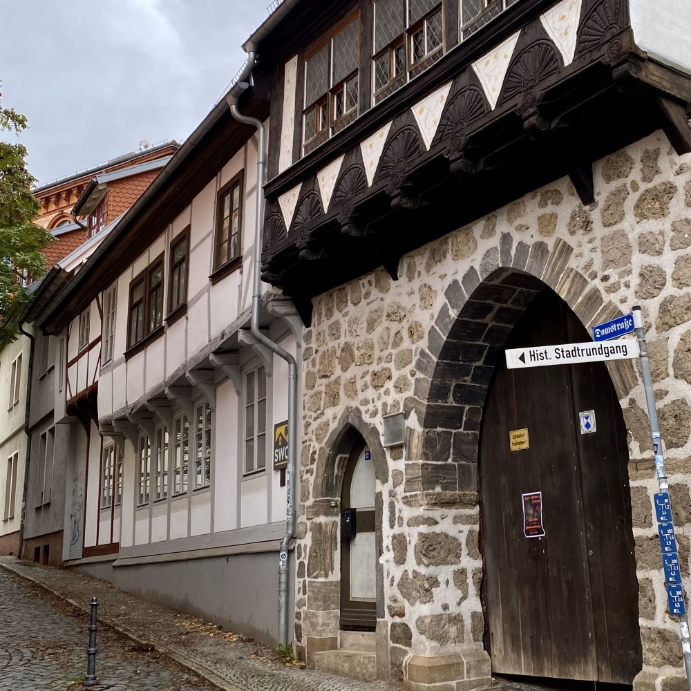 Auch ein paar schöne Profanbauwerke, wie das zwischen 1608 und 1610 im Renaissancestil erbaute Alte Rathaus mitsamt hölzernen Roland, hat Nordhausens Altstadt zu bieten. Aber die Lücken, die der Zweite Weltkrieg ins einst geschlossene mittelalterliche Stadtbild gerissen hat, sind unübersehbar. Nur eine Woche bevor die US Army in Nordhausen einmarschierte und dabei auch das hiesige Konzentrationslager Mittelbau-Dora befreite, fanden am 3. und 4.April 1945 zwei massive Luftangriffe der britischen Royal Air Force statt. Ca. 75 % der Bausubstanz und über 8.000 Menschenleben fielen den Bomben zum Opfer. Nach 1945 musste schnell wieder neuer Wohnraum hochgezogen werden, aber wenigstens einige Straßenzüge konnten im historischen Zustand erhalten werden und erfuhren in den letzten drei Jahrzehnten großflächige Sanierungen.
