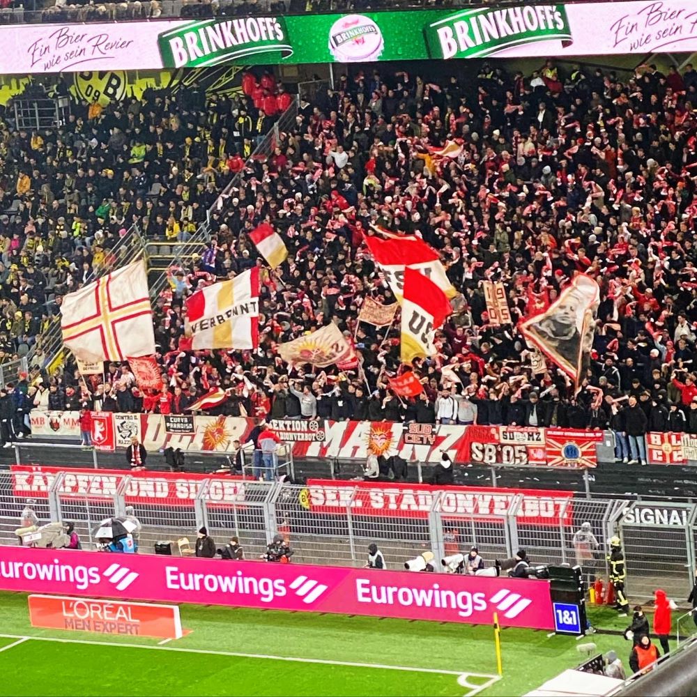 Ich hatte eigentlich geplant, dass zumindest auf deutschem Boden mein fußballerischer Jahresabschluss 2023 in Kiel stattfindet. Aber kurzfristig kam doch tatsächlich noch eine Geburtstagseinladung für den 19. Dezember ins Postfach geflattert. Geburtstagskind war der in den Abendstunden des 19. Dezembers 1909 im Dortmunder Wirtshaus Zum Wildschütz von Franz Braun, Paul Braun, Heinrich Cleve, Hans Debest, Paul Dziendziella, Franz Jacobi, Julius Jacobi, Wilhelm Jacobi, Hans Kahn, Gustav Müller, Franz Risse, Fritz Schulte, Hans Siebold, August Tönnesmann, Heinrich Unger, Robert Unger, Fritz Weber und Franz Wendt gegründete BV Borussia 09. Die ausgegliederte und börsennotierte GmbH & Co. KGaA dieses mittlerweile auf rund 190.000 Mitglieder angewachsenen Vereins sollte nun exakt 114 Jahre später den FSV Mainz 05 zu einem Pflichtspiel der 1.Bundesliga im Dortmunder Westfalenstadion empfangen. Jene Koinzidenz sorgte dafür, dass die aktive Fanszene des BVB auch diesen „unrunden“ Geburtstag groß zelebrieren wollte.