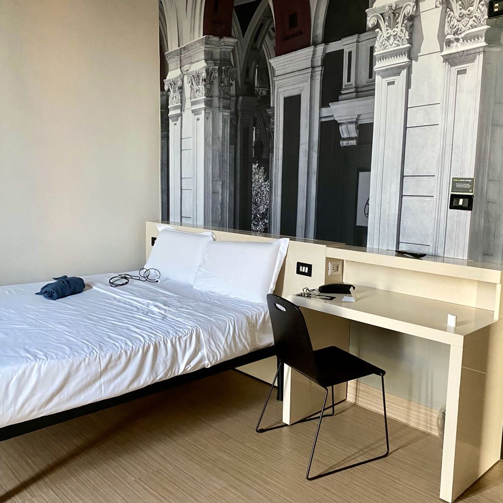 Am Gate zeigte Gott sogleich, dass er Glattos Generosität gut fand. Denn im Gegensatz zu zahlreichen anderen Passagieren unseres Fluges, musste er nicht für sein eigentlich zu großes Handgepäckstück nachzahlen (aber gut, wir haben uns im wahrsten Sinne des Wortes auch nicht wie Trottel angestellt). Weiters hatten wir im ansonsten gut ausgelasteten Airbus einen freien Mittelplatz in unserer Sitzreihe. Bei soviel Glück, machte es uns auch nichts aus, dass Enteisungsmaßnahmen die Abflugzeit spontan von 12:30 Uhr auf 13:10 Uhr änderten. Letztlich erreichten wir Napoli trotzdem fast planmäßig (15:00 Uhr statt 14:45 Uhr) und per Alibus (5 € p. P.) waren wir schon kurz nach der Landung an der Rezeption des gebuchten B&B Napoli (***). Jenes Hotel an der zentralen, aber nicht besonders seriös wirkenden Piazza Garibaldi sollte uns die kommenden vier Nächte inklusive Frühstück und Tourismusabgabe für 256 € pro Einzelzimmer beherbergen.