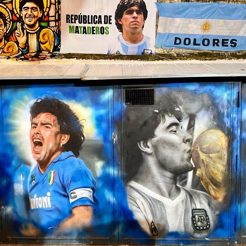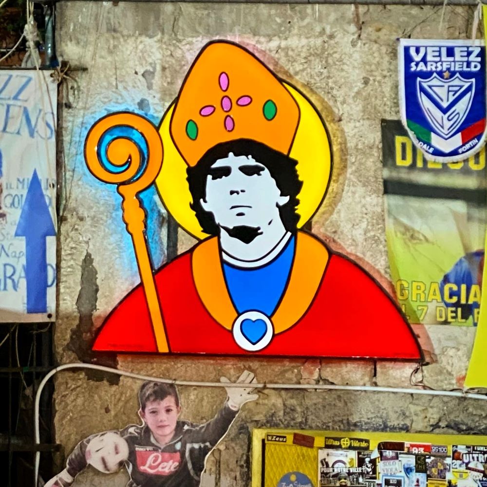 Der Ort, den nahezu jeder Tourist im Quartieri Spagnoli besucht, trägt dabei erneut den Namen von Diego Armando Maradona. Auf einem mittlerweile offiziell als Largo Maradona bezeichneten Plätzchen erinnert ein 1990 vom lokalen Künstler Mario Filardi geschaffenes riesiges Wandgemälde an die argentinische Heldenfigur der Stadt. Nach Maradonas Tod im November 2020 hat sich der Platz endgültig zu einem Pilgerort für Fußballfans aus aller Welt entwickelt. Unterhalb des Wandbildes werden an einem Altar seitdem Blumen, Schals und andere Devotionalien niedergelegt. Zugleich haben insbesondere Argentinier die Wimpel ihrer Heimatvereine an den Wänden hinterlassen und weitere Murals mit Maradonas Abbild sind ebenfalls rund um den Platz entstanden.