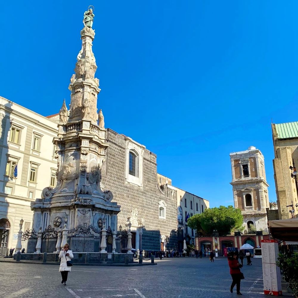Von der Altstadt zog es uns am späten Nachmittag hinunter ans Wasser. Dort passierten wir u. a. das mächtige Castel Nuovo, welches ab dem 14.Jahrhundert als Residenz und Festung der Könige des Regno di Napoli (Königreich Neapel) diente. Anschließend stiegen wir hinauf zur exponiert liegenden Piazza del Plebiscito, wo sich mit dem barocken Palazzo Reale di Napoli (hier residierten die neapolitanischen Könige ab dem 18.Jahrhundert) und der klassizistischen Basilica di San Francesco di Paola (frühes 19.Jahrhundert) weitere beeindruckende Bauwerke befinden. Auch das 1737 eröffnete Opernhaus Teatro di San Carlo und die noble Einkaufspassage Galleria Umberto I (1890) grenzen an die Piazza del Plebiscito, so dass der Besucher hier wirklich eine große Ballung monumentaler Architektur vorfindet.