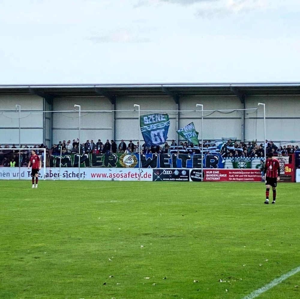 Auf dem Rasen stemmte sich der SVL unterdessen gegen die Derbyniederlage. Man probierte viel nach vorne, kam jedoch selten zu wirklich gefährlichen Abschlüssen. Der FCG schien sich erfolgreich gen Abpfiff mauern zu können, ehe in der 80. Minute ein Schiedsrichterpfiff nochmal alle Lippstädter hoffen ließ. Sie bekamen einen Strafstoß zugesprochen, doch der eigentlich verlässliche Viktor Maier (Rekordtorschütze des SVL) bugsierte das Leder vom Elfmeterpunkt über die Torlatte. Nochmal großer Jubel im Gästesektor, während die Lippstädter dem Ausgleich in der restlichen Spielzeit kein zweites Mal so nah kommen sollten.