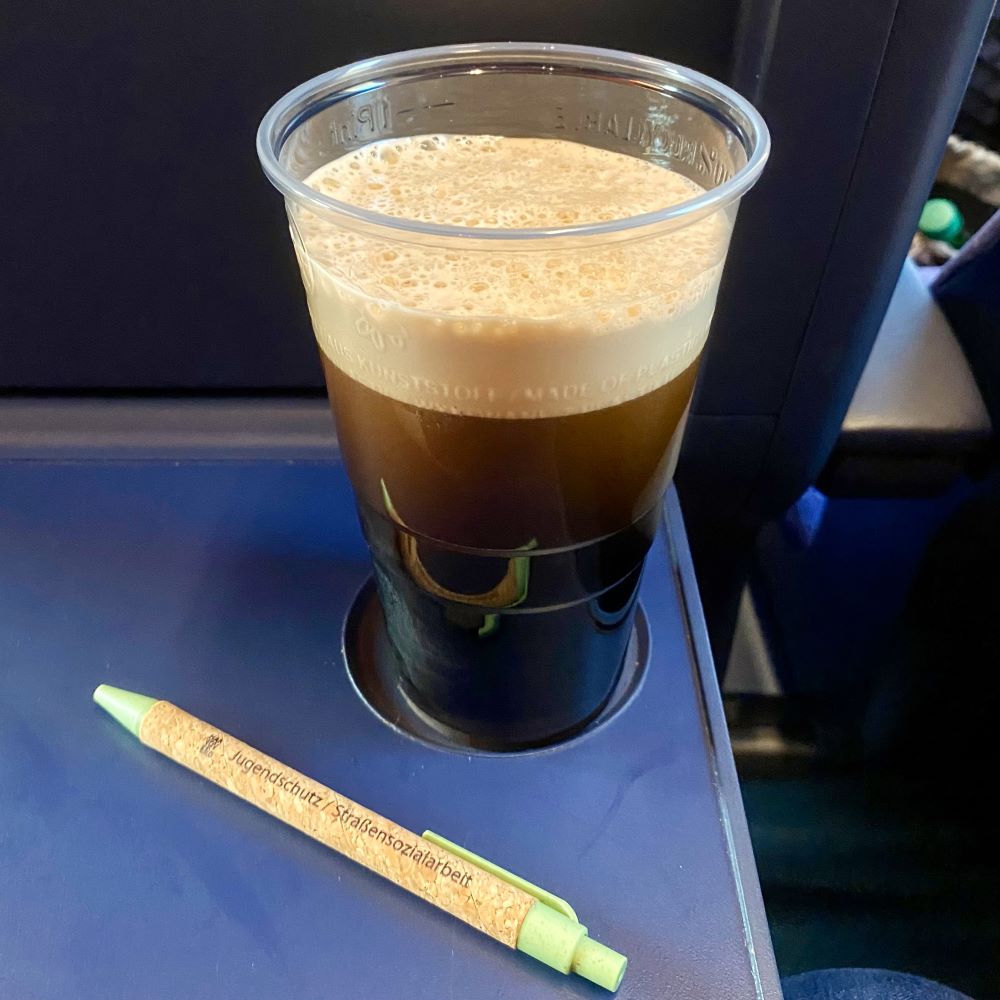 Meine kleine Führung endete um 17:45 Uhr in der 24/7-Kneipe Gleis 25. Weil unser ICE laut DB App bereits mit 20 Minuten Verspätung in Frankfurt ankommen sollte, blieb uns dort noch genug Zeit für eine Runde Binding (0,5 l à 5,40 €). Als der Zug dann 18:20 Uhr abfahrbereit im Gleis stand, hatte die Bahn allerdings mal wieder etwas besonders Skurriles zu bieten. Der ICE auf dem Nachbargleis war angeblich nicht weit genug in den Bahnhof eingefahren und blockierte so weiterhin die Weiche. Offenbar war es technisch nicht möglich, dass der Kollege nachträglich ein paar Meter weiter reinfährt. Deshalb mussten wir warten, bis jener ICE seine Fahrt fortsetzte.