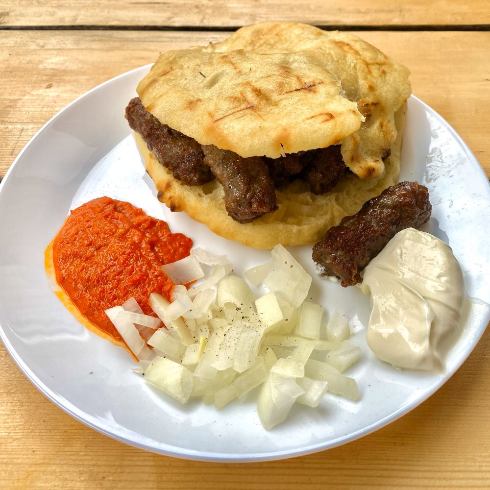 Außerdem kann man sich in Sachen karnivorischer Kost stets auf Ole verlassen. Beim bosnischen Grillimbiss Sarajevo in der Karlsruher Straße servierte man uns gegen 16:30 Uhr in der Tat fantastische Ćevapčići mit Zwiebeln, Kajmak, Ajvar und Lepinja. Drei Portionen und drei Jelen pivo schlugen dabei mit fairen 30 € zu Buche. Anschließend machten wir noch einen kleinen Verdauungsspaziergang durch das Viertel. Via Kaisersack, Moselstraße, Elbestraße und Niddastraße ging es zurück zum Hauptbahnhof. Ganz ohne Kultur geht es bei Schneppe Tours nunmal auch nicht…