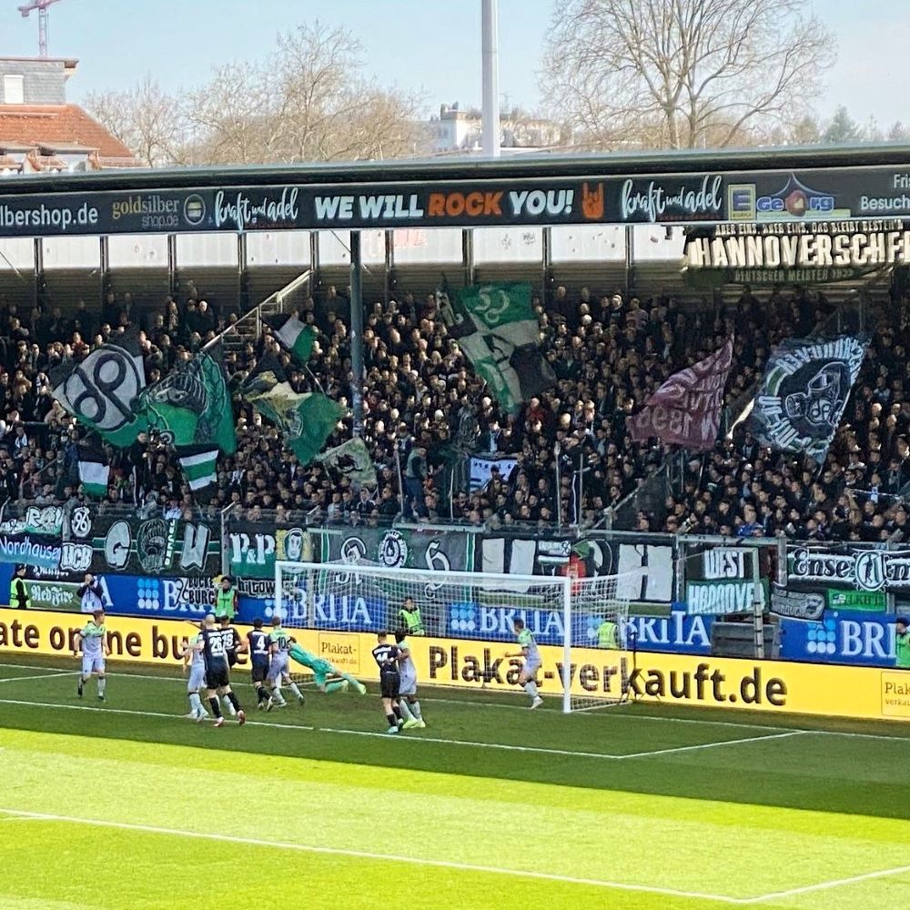 Ca. 30 % der knapp über 10.000 Stadionbesucher hielten es heute optisch und vor allem auch akustisch mit jenem Hannoverschen Sportverein von 1896. Der hatte zwar zuletzt in Osnabrück fürchterlich enttäuscht (0:1 aus 96-Sicht) und gegen Düsseldorf reichte es am vorigen Spieltag auch nur zu einer Punkteteilung (nach 0:2 zur Pause), aber dennoch war man weiterhin im Pott der potentiellen Aufsteiger. Weil der Hamburger SV am Vorabend in Düsseldorf unterlag, würde ein Auswärtssieg die Leitl-Elf heute sogar auf den 3.Platz katapultieren.