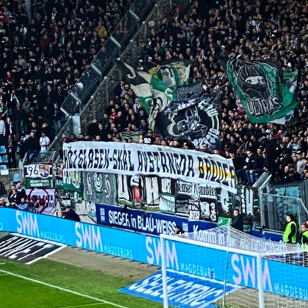 Besser als mit diesen Osterklassiker der hannoverschen Fanszene, kann ein Bericht des Osterausfluges nach Magdeburg wahrscheinlich nicht beginnen. Damit könnten wir auch beinahe schon ins Stadiongeschehen einsteigen, denn die Anreise verlief unspektakulär und ein Kulturprogramm abseits des Fußballspiels war heute nicht geplant. Denn einerseits wäre der Ostersonntagvormittag ein denkbar schlechter Zeitpunkt für abermaliges Sightseeing* in den sakralen Bauwerken der Stadt gewesen, andererseits wurde ich am Magdeburger Hauptbahnhof bereits mit einer Dose Bier empfangen.