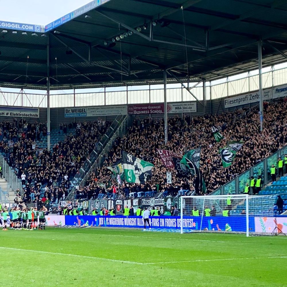 Jener angeblich über drei Ecken mit Theo Zwanziger und Angelo Vier verwandte Zwölf hatte es heute allerdings nicht in die Startelf geschafft. Zum eingespielten Klang der Domglocken betraten elf andere Spieler mit der 96 auf der Brust den Rasen. Besonders stolz geschwellt dürfte die Körperpartie unter dem hannoverschen Vereinsemblem nach den zuletzt durchwachsenen Ergebnissen zwar nicht gewesen sein, andererseits hatte der heutige Gastgeber in den letzten Wochen noch schlechter abgeliefert. Die Schützlinge von Christian Titz haben jüngst sieben Dinger in Karlsruhe eingeschenkt bekommen und letztmals vor fünf Wochen ein Pflichtspieltor bejubeln dürfen. Sollte sich diese Form der Askese heute fortsetzen, dürfte das Abstiegsgespenst langsam, aber sicher wieder in Magdeburg herumspuken.