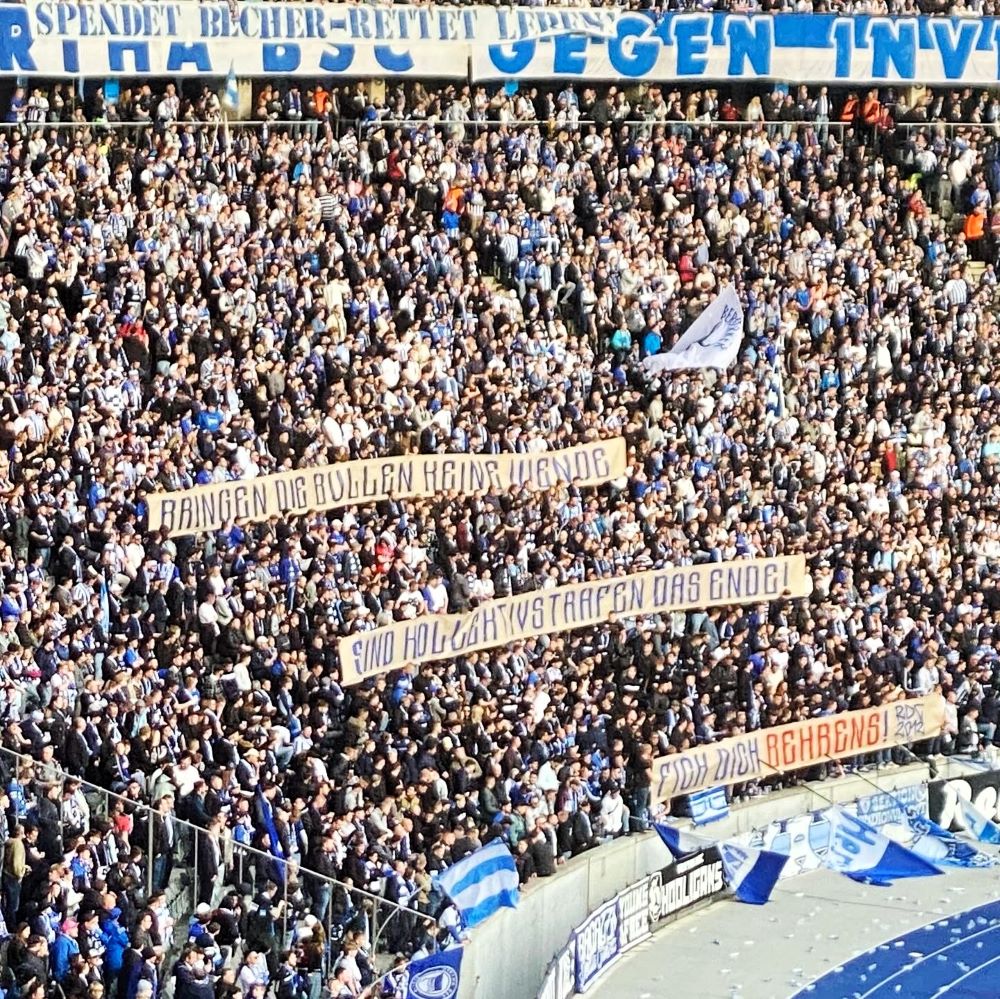 In den Fanszenen hat Daniela Behrens mit ihrem Faible für Kollektivstrafen dagegen naturgemäß keine Zustimmung gewonnen. So gab es heute in Herthas Ostkurve beispielsweise folgende Grußbotschaft an die niedersächsische Innenministerin: „In Niedersachsen, Berlin und überall… Kollektivstrafen sind keine Option!“ Auch anderenorts war an diesem Spieltag ähnliches zu lesen. Aber ihr wird’s egal sein. Sie hat auf dem Rücken der Fußballfans erfolgreich bundesweite Aufmerksamkeit generiert. Das Playbook des Populismus ist eben mittlerweile in allen politischen Lagern sehr populärer Lesestoff geworden.