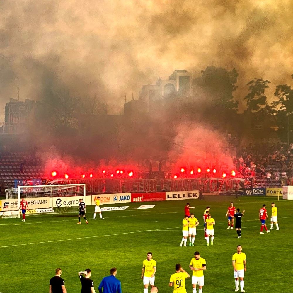 Neben dem Kampf um einen Platz in den Top 6, sorgte heute außerdem das Beziehungsgeflecht der Fanszenen für weitere Brisanz. Denn die Fanatiker von Motor Lublin pflegen eine innige Freundschaft mit Anhang von Śląsk Wrocław. Auch zwei Tage zuvor, als ich bei Śląsk gegen Ruch zugegen war, waren mal wieder Jungs von Motor im Heimsektor auf Besuch. Ehrensache, dass auch eine Abordnung von Śląsk am heutigen Abend zur Kontaktpflege ins nahe Opole gefahren ist. Problematisch daran ist allerdings, dass Śląsk der Todfeind von Odra ist. Außerdem ist Odra obendrein mit der Fanszene von Zagłębie Lubin befreundet, die wiederum der niederschlesische Erzrivale von Śląsk sind (Vgl. Wrocław 07/2023).
