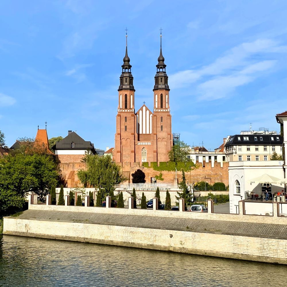 Pfarrkirche der zunächst kleinen Gemeinde wurde die 1223 erstmals urkundlich erwähnte Kreuzkirche, die bereits im 13. Jahrhundert zu einem Kollegiatstift ausgebaut wurde und seit 1972 als Bazylika Katedralna Podwyższenia Krzyża Świętego (Kathedrale zum Heiligen Kreuz) dem Bischof des seinerzeit neu errichteten Bistums Opole als Kathedralkirche dient. Jene dreischiffige gotische Hallenkirche bot sich mir auch als nächstes Ziel an. Allerdings musste ich feststellen, dass zur Zeit der komplette Innenraum saniert wird und daher nicht zugänglich ist.