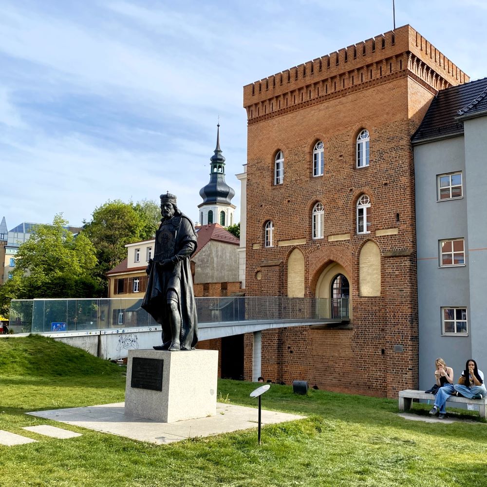 Nichtsdestotrotz führte mich dieser nun etwas deplatziert wirkende mittelalterliche Turm zu den Wurzeln der Stadt. Denn Oppelns erster Herzog Kasimir I. – aus dem Geschlecht der schlesischen Piasten – errichtete an dieser Stelle im frühen 13. Jahrhundert seine Residenz. Zwar existierte hier bereits seit einigen hundert Jahren eine befestigte Siedlung des slawischen Stammes der Opolanen, aber eine mittelalterliche Stadt mit entsprechenden Rechten und Institutionen gründete erst Kasimir. Er beurkundete 1217 das Stadtrecht und warb in den 1210er Jahren parallel die ersten deutschen Siedler für seine Neugründung an.