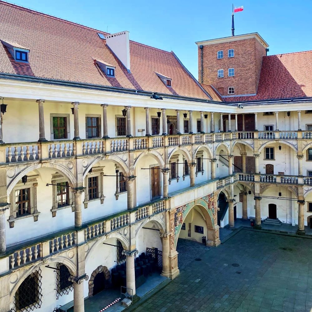 Nach einer der zahlreichen Erbteilungen der Piasten wurde Brzeg, respektive Brieg, 1311 zur Residenzstadt eines gleichnamigen Herzogtums erhoben. Dieses Herzogtum Brieg bestand bis 1675 und im hiesigen Schloss wollte ich die Geschichte der Stadt und der schlesischen Piasten mal genauer unter die Lupe nehmen. Denn heutzutage ist das einstige Residenzschloss Heimat des Muzeum Piastów Śląskich (Museum der schlesischen Piasten). Gegen eine Eintrittsgebühr von 20 Złoty (ca. 4,50 €) konnte ich im Schloss u. a. etliche reich verzierte mittelalterliche Särge des Herrschergeschlechts in Augenschein nehmen. Ferner habe ich mir nochmal den ordentlich verästelten Stammbaum der Piasten angeschaut, die in Schlesien zig Linien und dutzende Herzogtümer hatten. Gefühlt ist jede Stadt in Schlesien mal Residenz eines eigenen Herzogtums gewesen…