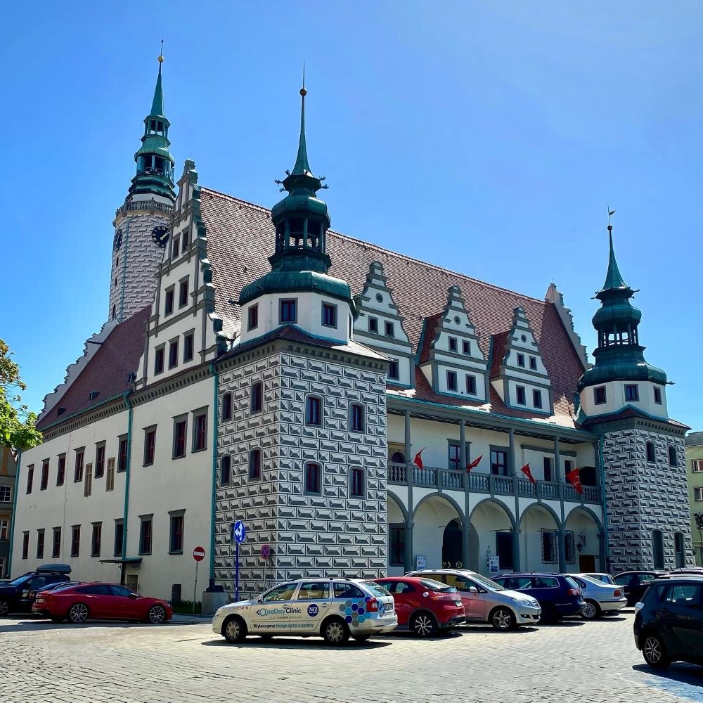 So zog es mich rasch weiter zum Rynek (Ring). An Opoles historischem Marktplatz kreuzten sich mit der Via Regia (Calais nach Kiew) und der Bernsteinstraße (Ostseeküste nach Venedig) zwei wichtige mittelalterliche Handelswege. Zusammen mit der schiffbaren Oder, ergaben sich somit glänzende Bedingungen für die hiesigen Kaufleute. Wahrscheinlich existierten bereits im Mittelalter prächtige Patrizierhäuser an diesem 92 x 78 m großen Platz. Da die mittelalterliche Bebauung jedoch vorwiegend aus Holz bestand, hat davon nichts die Jahrhunderte überdauert. Denn Brände und Kriege nennt die hiesige Chronik leider zuhauf.