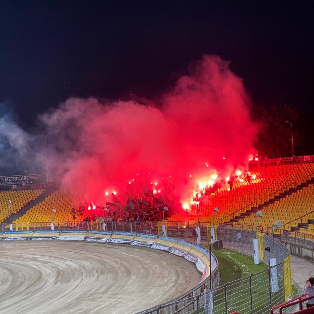 Nach dem Feuerwerk folgte kurz vor Spielende noch eine dritte Pyroshow (siehe Titelbild) und dann war auch schon Abpfiff. Ich hatte die letzten 30 Minuten kaum noch auf’s Spielfeld geschaut und kann daher auch gar nicht sagen, ob da noch eines der Teams dem Sieg nahegekommen ist. Aber auch ohne dieses Wissen spazierte ich nach Spielschluss sehr beseelt zum Bahnhof zurück und nahm die nächstbeste Bahn nach Katowice. Dort lag ich kurz vor 23 Uhr zufrieden im Bett und freute mich nebenbei schon diebisch auf das morgige Pokalfinale in der Hauptstadt. Aber dazu kommen wir dann im nächsten Bericht.