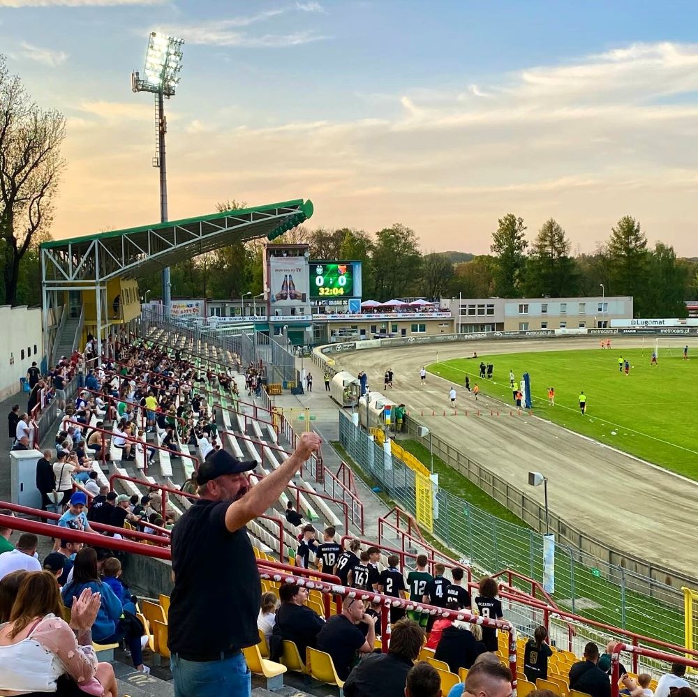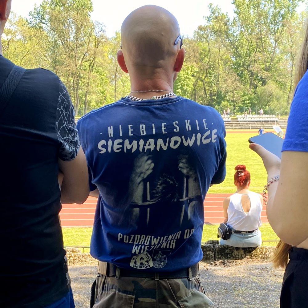 Die, die heute da waren, hatten auf jeden Fall alle Bock auf eine gute Atmosphäre und ließen das Fehlen der Gäste für mich halbwegs verschmerzen. Für einen Moment dachte ich sogar, dass ich zwischen all den Rybnikern und ihren Freunden so ziemlich der einzige wirklich fremde Spielbesucher bin. Doch bei meiner Stadionrunde konnte ich Mirko Otto (Blickfang Ultra, Beziehungskiste, Polska Kibolska etc.) und weitere mutmaßlich in der DDR geborene Groundhopper identifizieren.