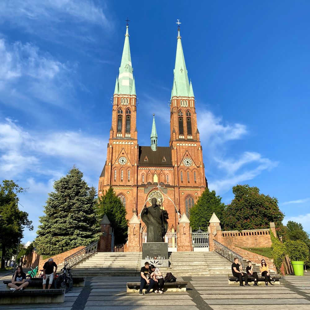 Ich war tatsächlich vor sechs Jahren schon einmal in Rybnik gewesen (siehe Górny Śląsk & Ostrava 03/2018), so dass mir die „Hauptstadt“ des Rybnicki Okręg Węglowy (Rybniker Kohlerevier) bereits vertraut war. Zielsicher steuerte ich den historischen Kern an und nahm die schönsten Gebäude gerne noch ein zweites Mal in Augenschein (zumal mein Blick nicht so glasig wie beim letzten Mal war). Allerdings war es heute echt schon hochsommerlich (27° C) und am Rynek (Markplatz) war obendrein mächtig Trubel. Irgend so ein Basketballwettbewerb mit vielen Teilnehmern und Schaulustigen fand dort statt. Daher beschloss ich gegen 17:15 Uhr in den Untergrund zu gehen.