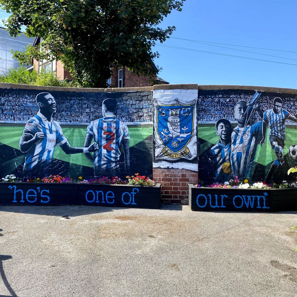 Eine gute Stunde vor Anpfiff erreichte ich das knapp 40.000 Zuschauer fassende Stadion und machte erstmal einen Spaziergang im Umfeld. Es gab es u. a. diverse Wandbilder zu entdecken und natürlich existiert auch eine Gedenkstätte für das Hillsborough disaster. Denn 1989 war es hier bei einem Halbfinale im FA Cup zwischen dem Liverpool FC und Nottingham Forest durch fatale Fehlentscheidungen der Polizei zu einer Katastrophe mit hunderten Verletzten und letztlich 97 Todesopfern gekommen. Eine schreckliche Tragödie, bei der die Angehörigen der Verstorbenen jahrzehntelang um Gerechtigkeit kämpfen mussten.