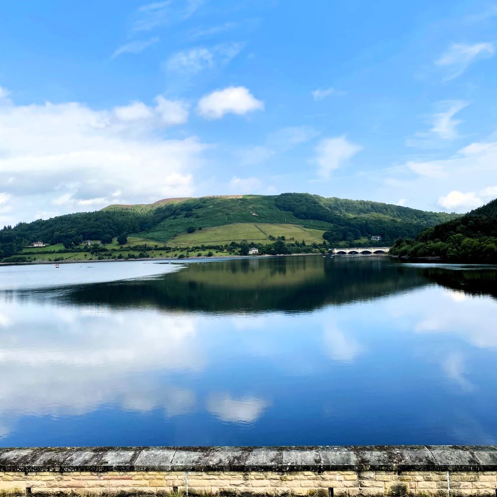 Unten im Tal war dann eine Landstraße zu queren, auf deren anderen Seite mich das bereits von den Klippen erspähte Ladybower Reservoir erwartete. Diese Talsperre des Flusses Derwent, die zwischen 1935 und 1943 vom Derwent Valley Water Board erbaut wurde, kann bis zu 27.896.000 m³ Wasser stauen und spielt eine wichtige Rolle bei der Trinkwasserversorgung der Region. Von der Staumauer bot sich mir ein schöner Ausblick, ehe es die letzten 3,8 km auf dem so genannten Thornhill Trail parallel zum Derwent zurück nach Bamford ging.