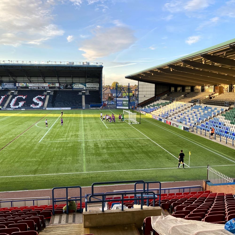 Jenes Widnes in der Peripherie von Liverpool erreichte ich um 19:15 Uhr und hatte nun noch 30 Minuten Zeit bis zum Anstoß des ersten Saisonspiels des City of Liverpool FC. Damit war ein Abendessen vor Anpfiff, wie ursprünglich angedacht, leider nicht mehr drin. Aber bei exakt 1.896 m Wegstrecke saß ich wenigstens pünktlich zu Spielbeginn auf der Haupttribüne des mit 13.350 Plätzen für einen Achtligisten leicht überdimensionierten Stadions.