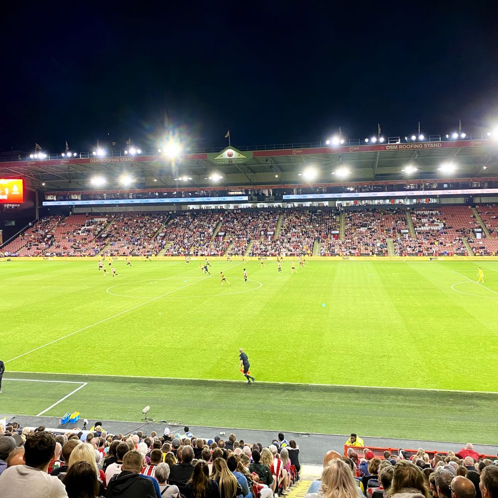 Eine Viertelstunde vor Anpfiff erreichte ich schließlich die Spielstätte des Sheffield United FC an der Bramall Lane, die 1855 eröffnet wurde und auf deren Rasenviereck seit 1862 Fußballspiele ausgetragen werden. Damit ist es der älteste Ground der Welt, der von einem Profiteam bespielt wird. Übertroffen wird die Bramall Lane altersmäßig lediglich von der Sandygate Road (ebenfalls in Sheffield), wo der 1860 gegründete Hallam FC am Boxing Day jenes Jahres gegen den drei Jahre älteren Sheffield FC das weltweit erste Fußballspiel zweier Clubs austrug (bis dahin hatten die Fußballpioniere nur vereinsintern Spiele ausgetragen, beispielsweise Verheiratete gegen Unverheiratete oder gerade gegen ungerade Geburtsjahrgänge).