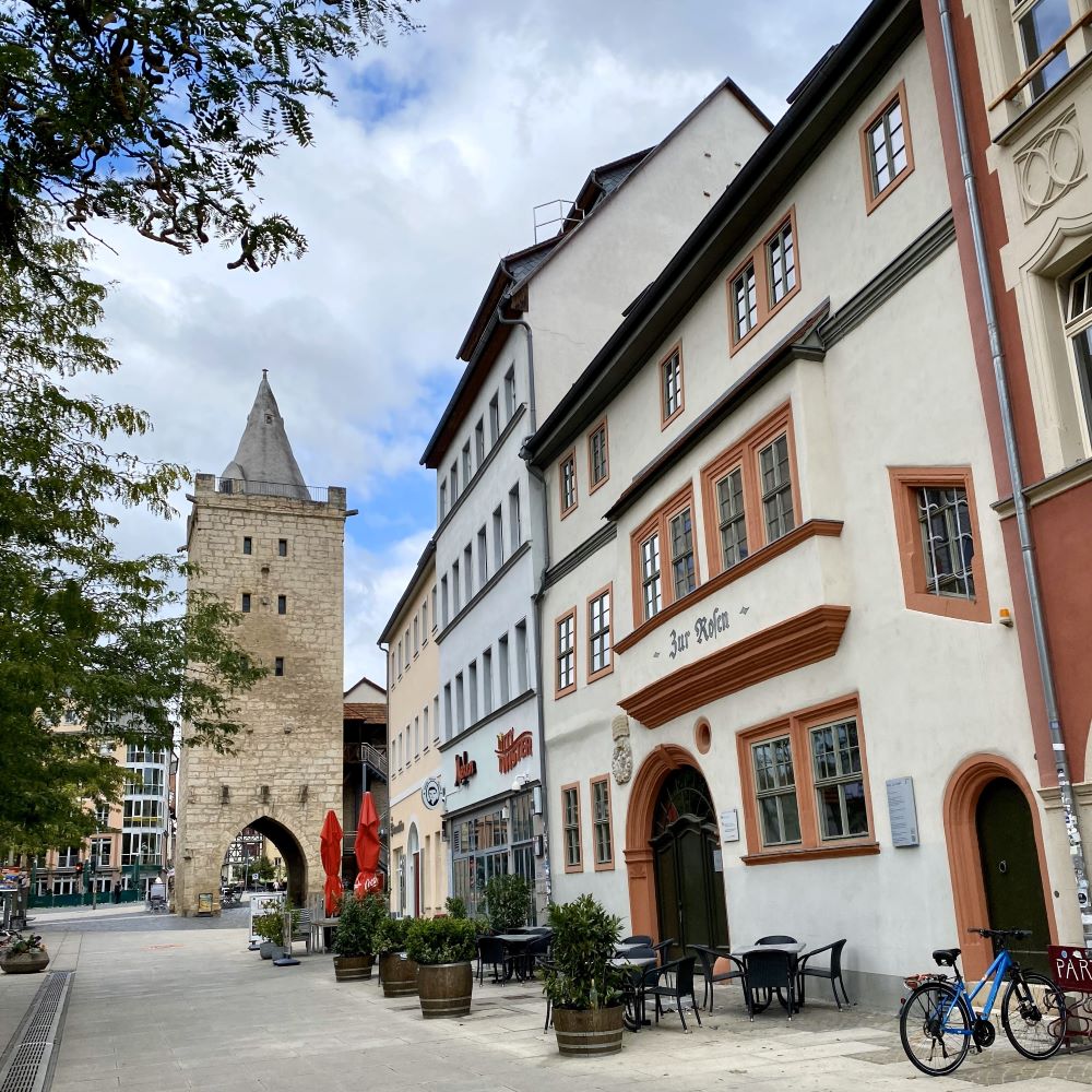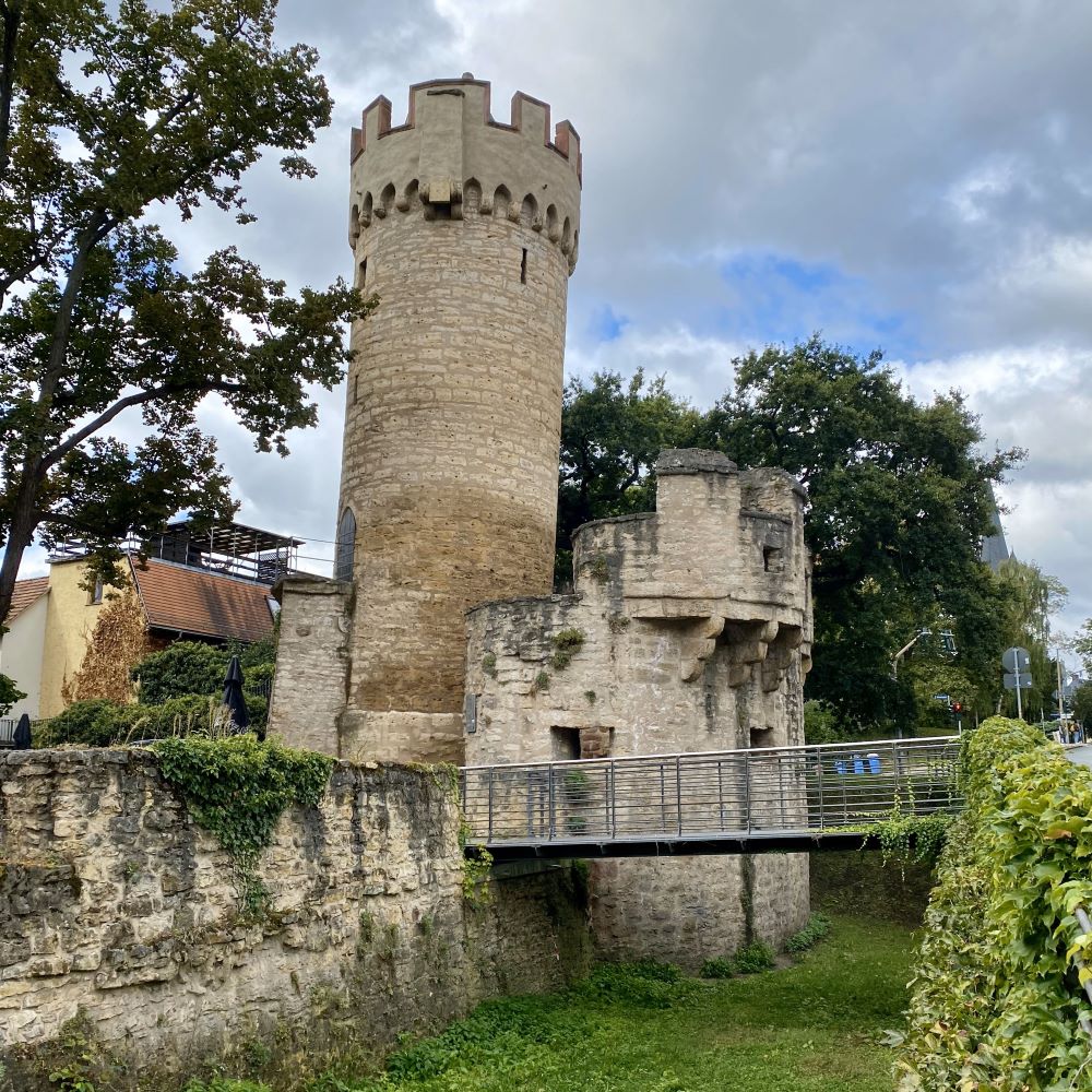 Nach dem Schmaus schlenderte ich erstmal an den Resten der historischen Stadtmauer aus dem 13. Jahrhundert entlang. Das Ensemble mit den beiden markanten Türmen Johannistor und Pulverturm befindet sich im Schatten des in Jena alles überragenden JenTower. Für das runde und 144,5 m hohe Bürohochhaus musste 1969 ein gut erhaltenes Altstadtquartier weichen. Am 2. Oktober 1972 wurde dieser „Leuchtturm“ des Sozialismus schließlich fertiggestellt und dem Carl-Zeiss-Kombinat übergeben. Die hatten aber eigentlich keine Nutzung dafür und überließen es der Universität.