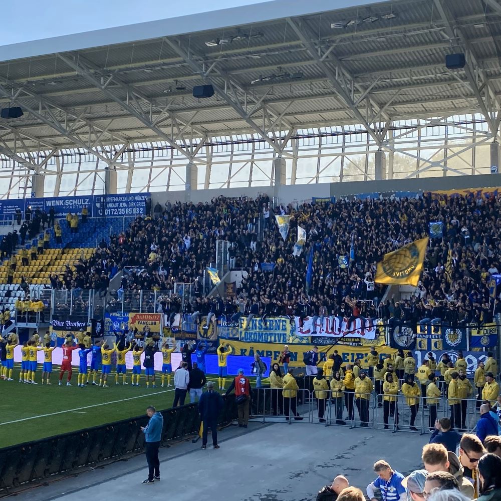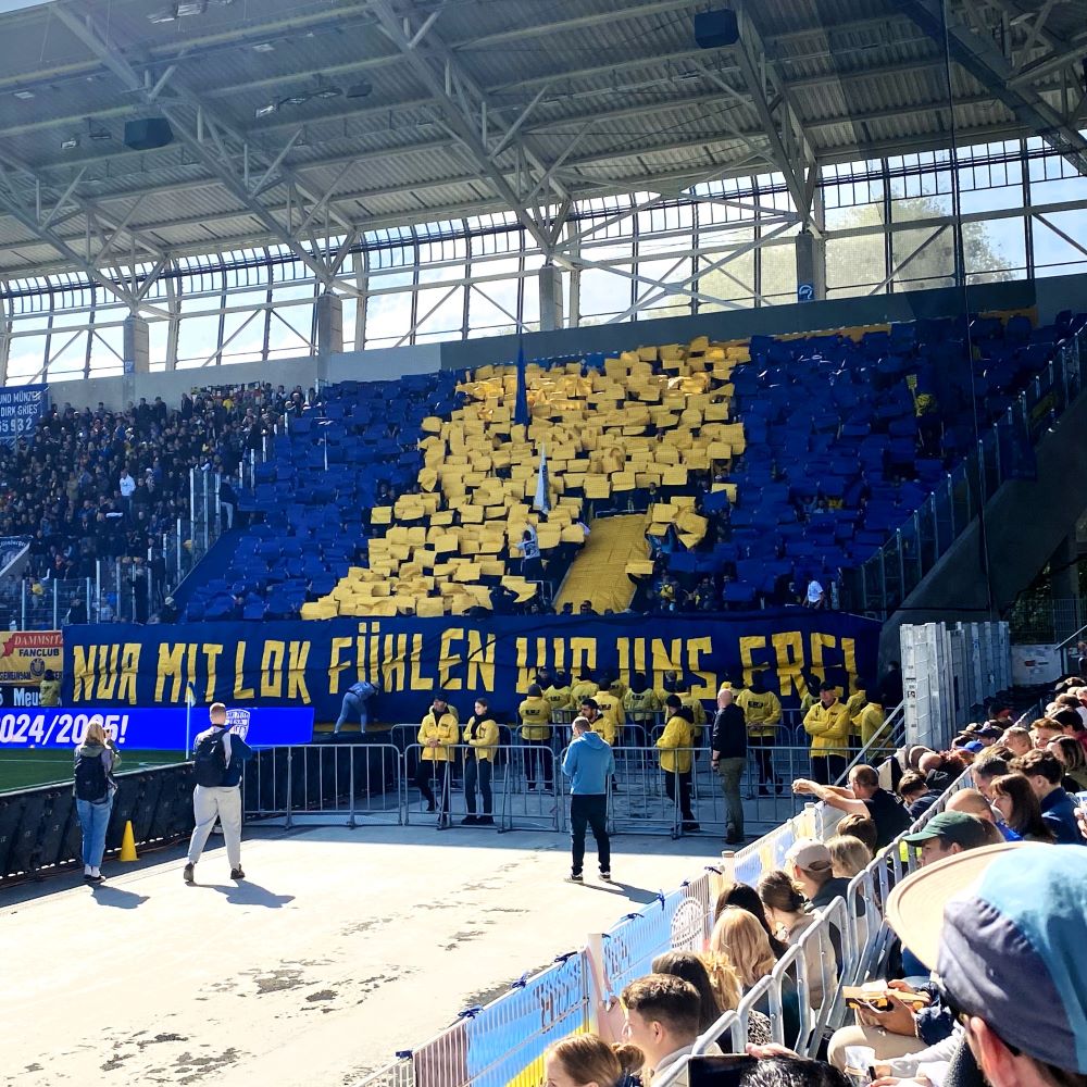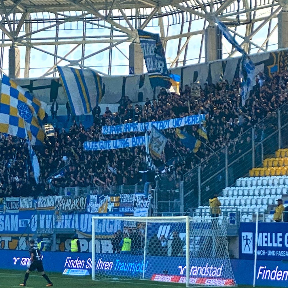 Heimseitig gab es dagegen kein besonderes Intro. Dazu machte der lautstarke Lok-Anhang es der Südkurve schwer dauerhaft zu mir durchzudringen. Ich saß eben deutlich näher an den Gästen und wenn die mit 1.500 Kehlen was schmetterten, kamen die 1.000 Seelen vom anderen Ende der Südkurve dagegen akustisch kaum an. Aktivität war aber permanent bei Horda & Co auszumachen. Ich denke, hätte ich gegenüber auf der Haupttribüne gesessen, wäre meine Wahrnehmung genau andersrum gewesen.